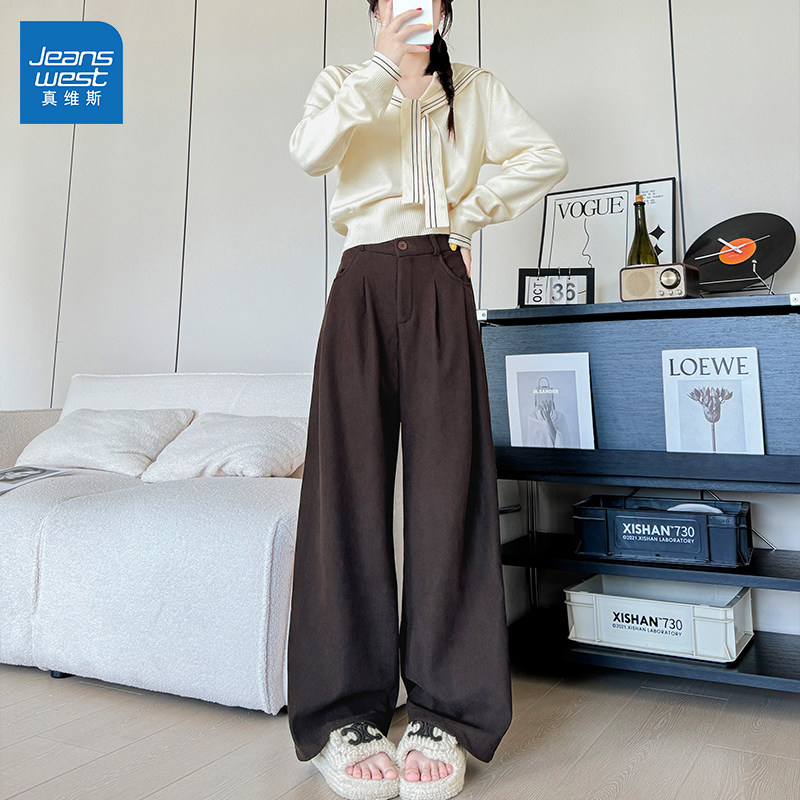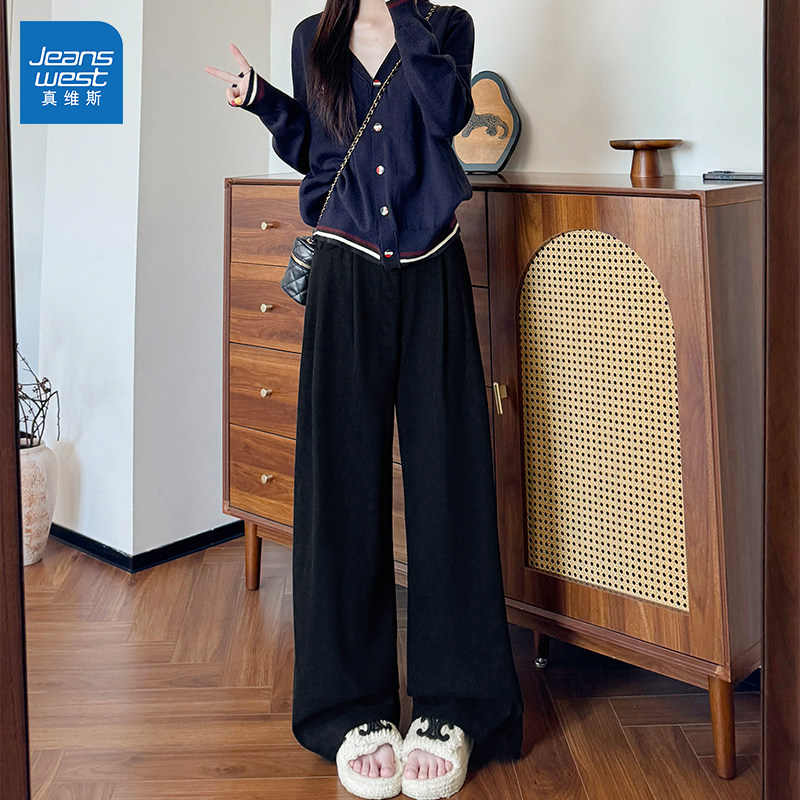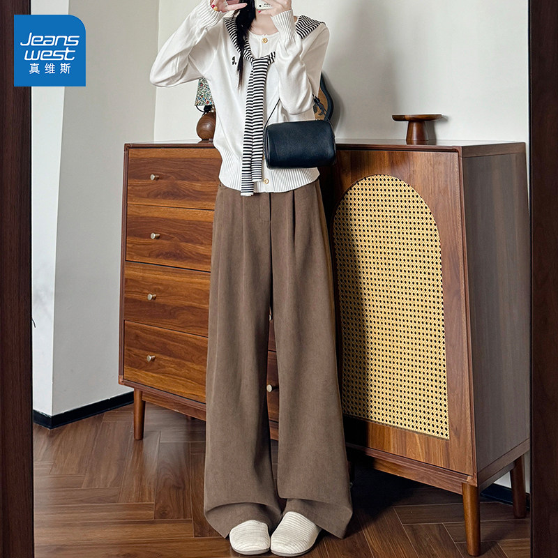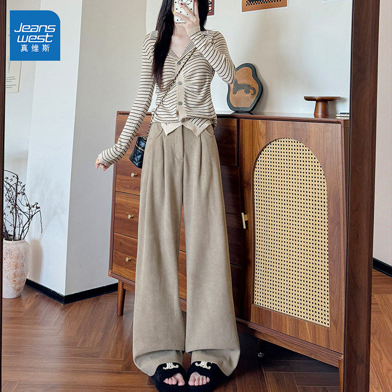 GL真维斯灯芯绒休闲裤女款2026冬季新款韩系显瘦西装裤百搭阔腿裤