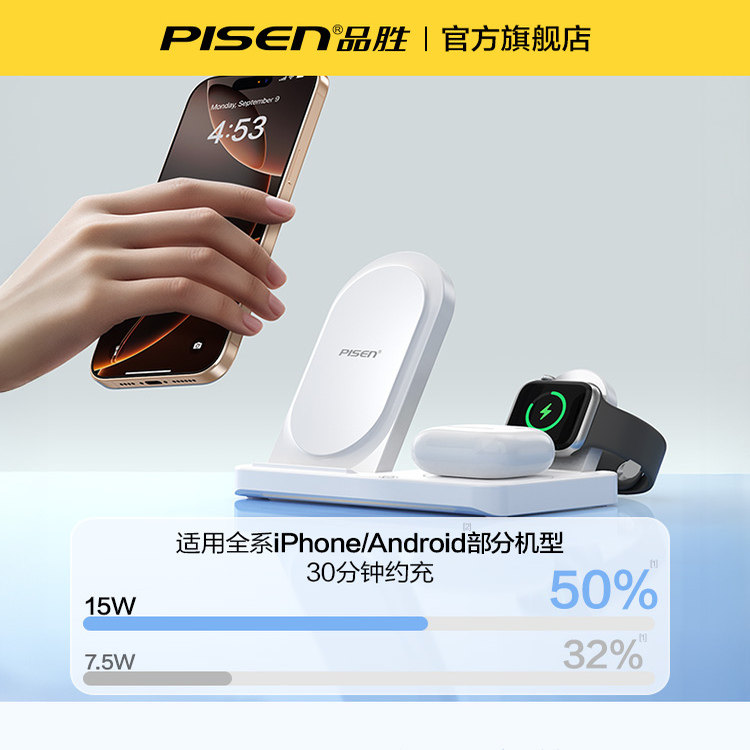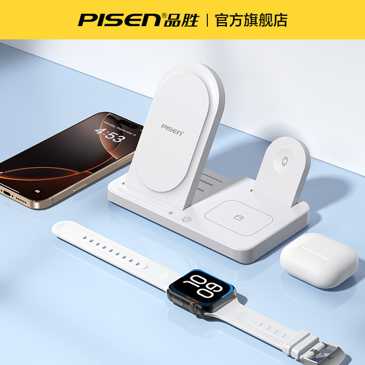 品胜桌面充电站三合一无线充电器45W适用苹果17快充apple watch手表16磁吸magsafe手机iPhone耳机15w底座S11