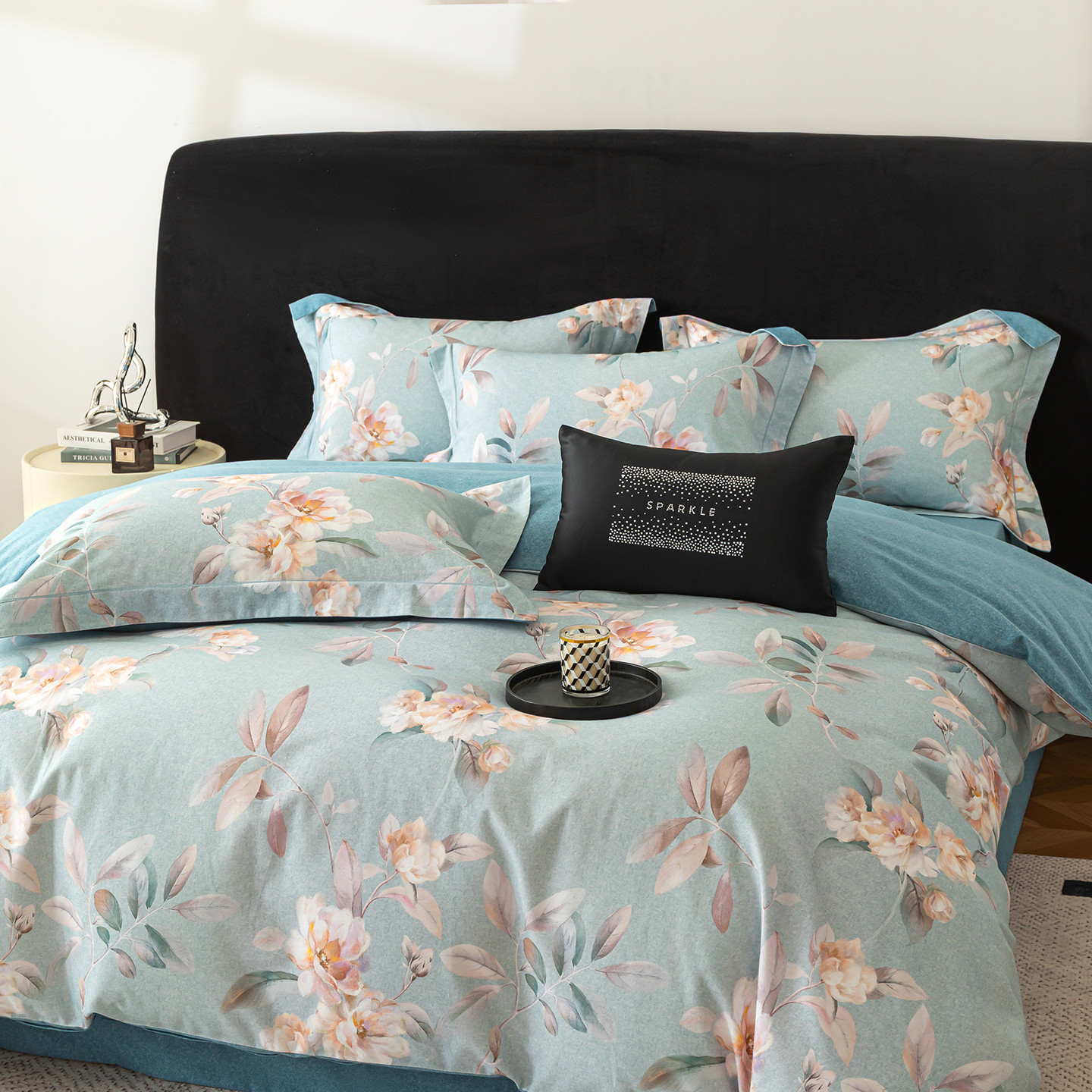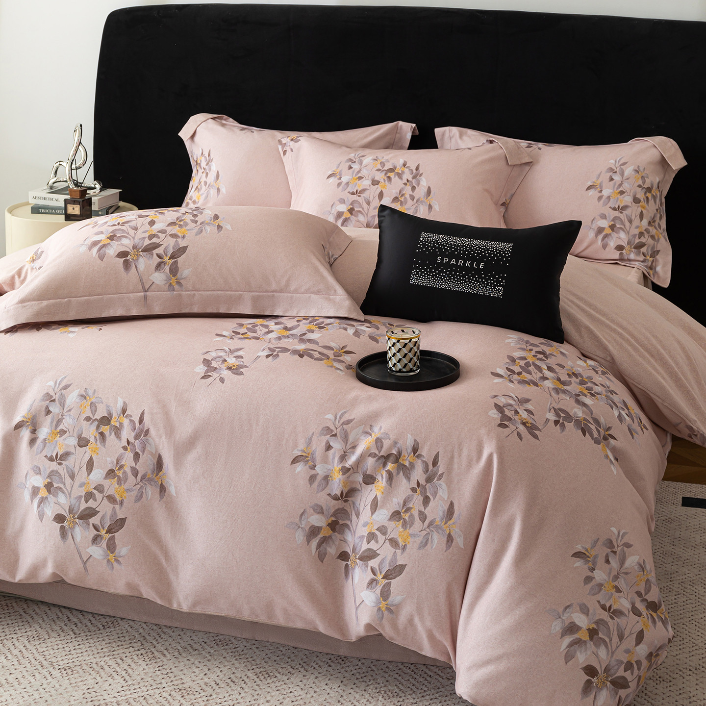 新款秋冬金太阳轻奢全棉磨毛印花四件套纯棉加厚保暖花卉床上用品
