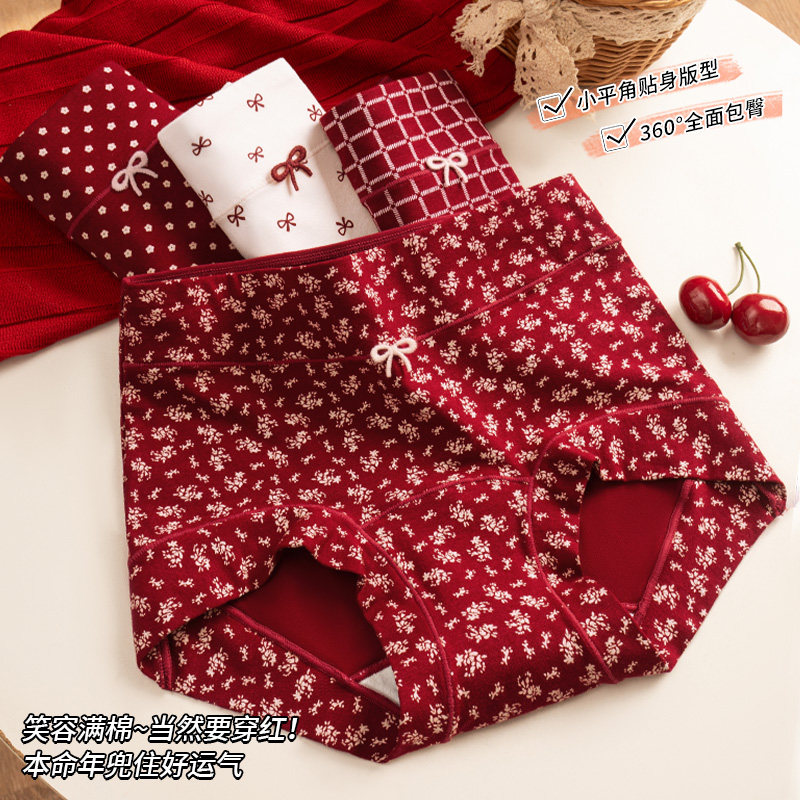 猫人本命年红色内裤女士纯棉抗菌全棉裆2025新款无痕平角四角短裤