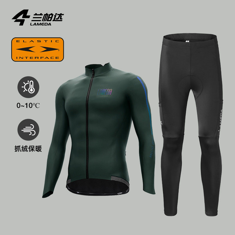兰帕达0-10度秋冬抓绒防风骑行服外套双箭头套装男公路自行车随风