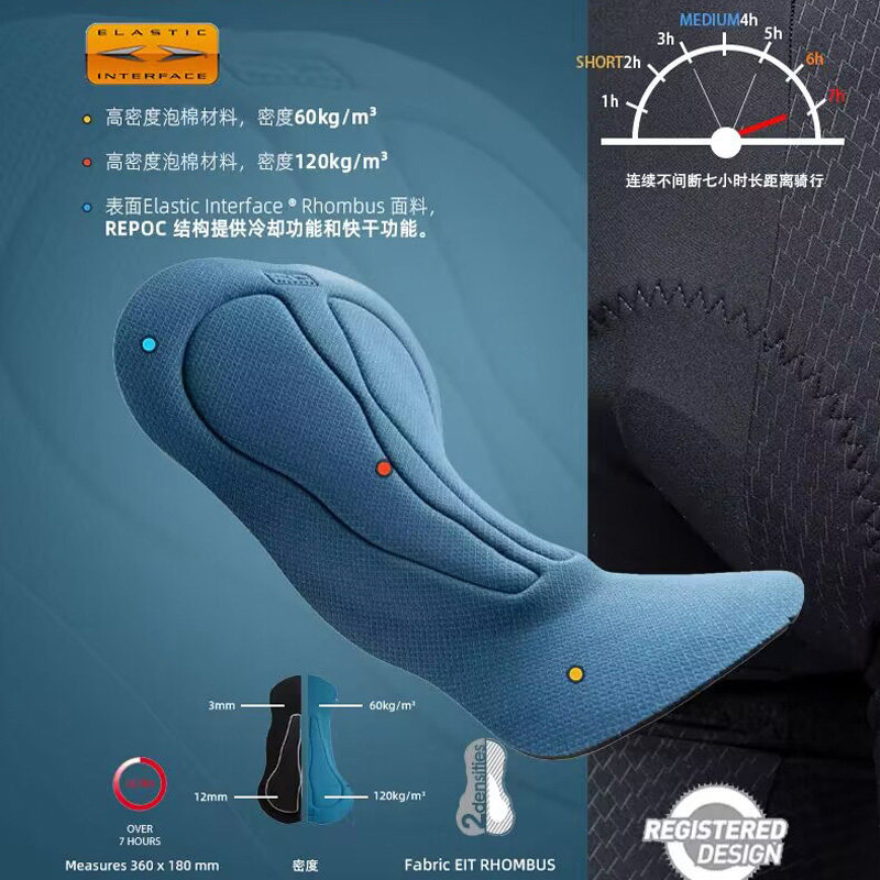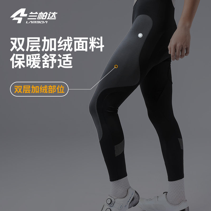 兰帕达 0-10度 双箭头背带骑行裤秋冬抓绒男女公路自行车长裤行云