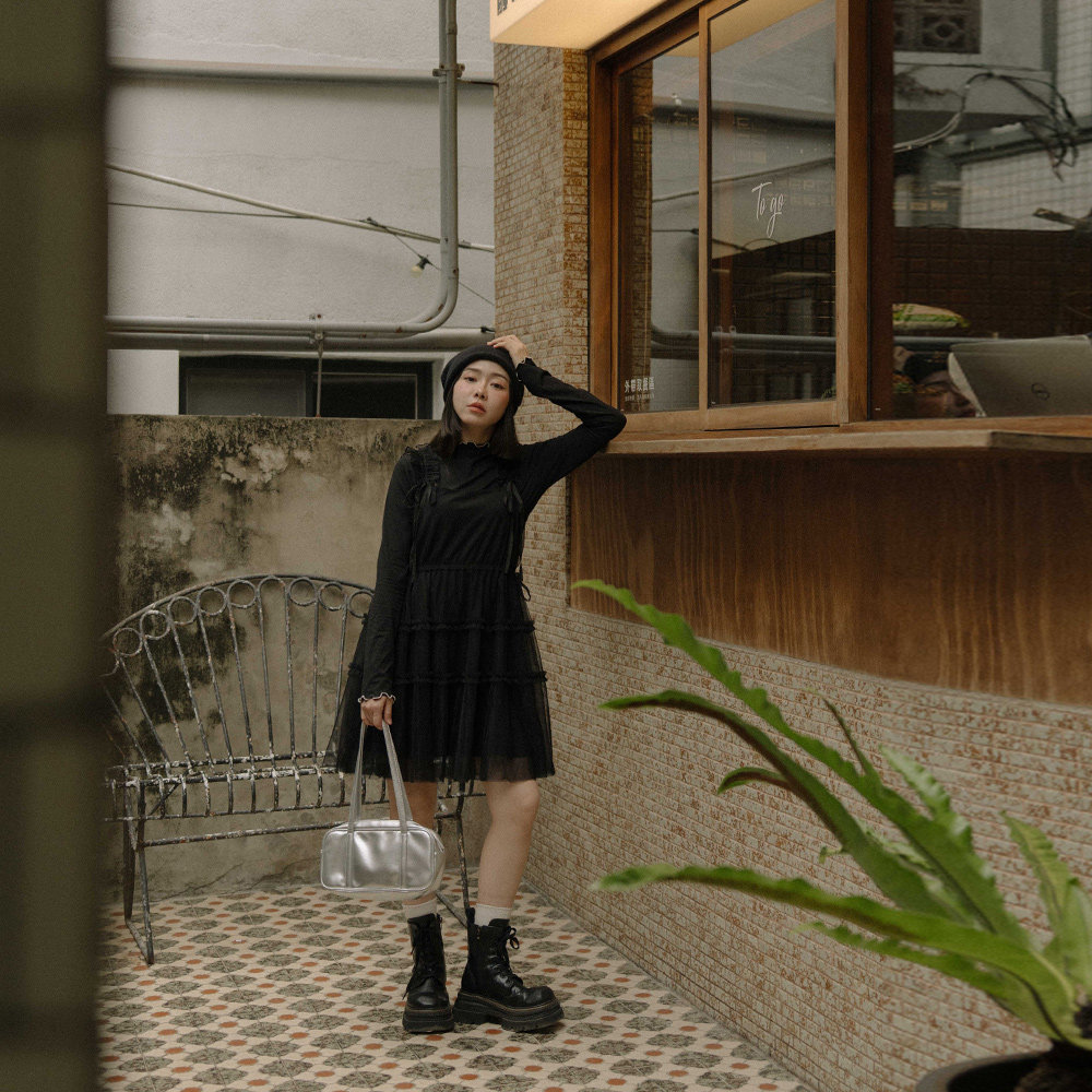 【气质淑女打底衫】蕾丝提花木耳边半高领网纱上衣叠穿好看女内搭