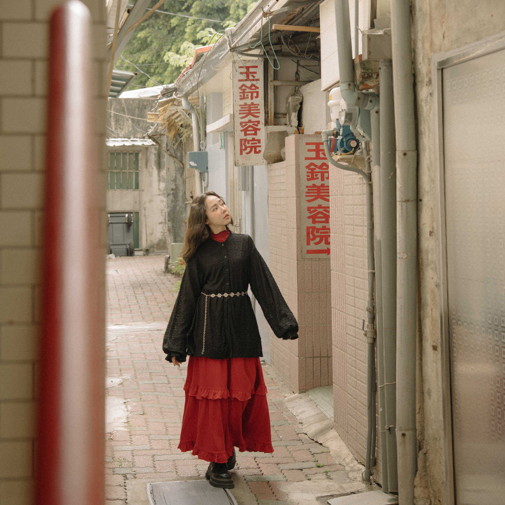 COCOBELLA多层蕾丝雪纺衫女秋赫本风木耳荷叶边长袖衬衫LC7028-2