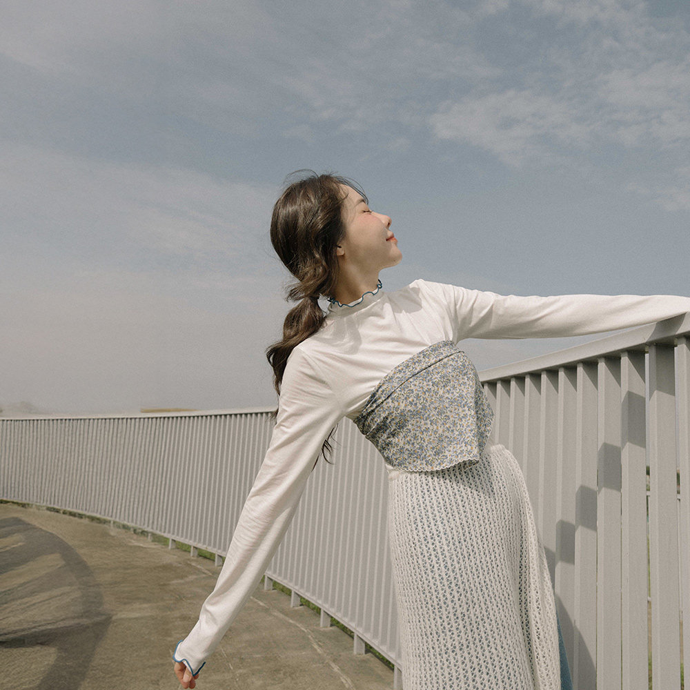 Lili百合乡|仙气百合花半高领修身打底衫银白色气质弹力蕾丝内搭