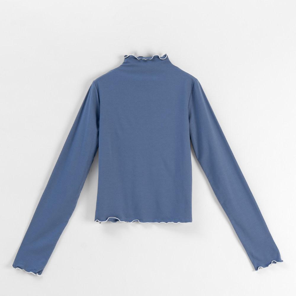 QUEENSHOP 2025秋冬新品女装配色木耳边高领长袖上衣01099107