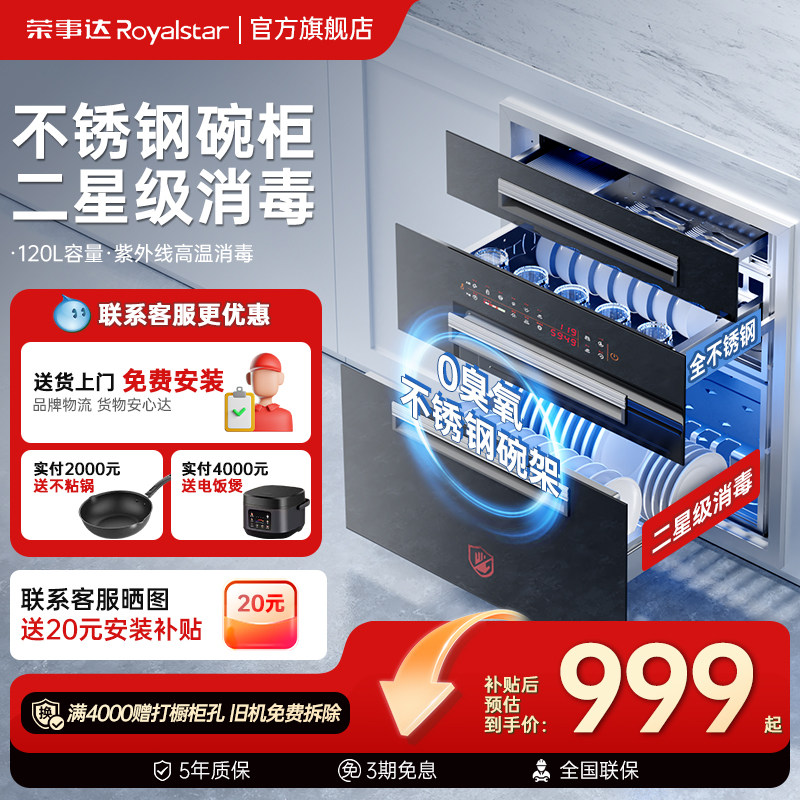 荣事达嵌入式消毒柜家用高温紫外线碗筷消毒碗柜厨房2025年新款
