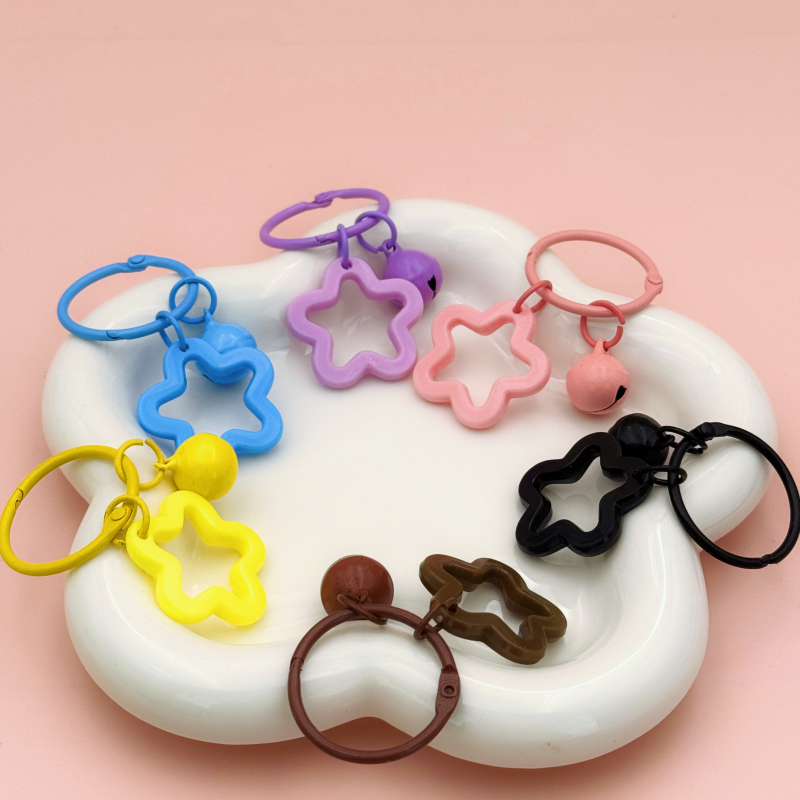 彩色亚克力星星钥匙扣圈环diy可爱铃铛星星书包锁扣挂饰配饰配件