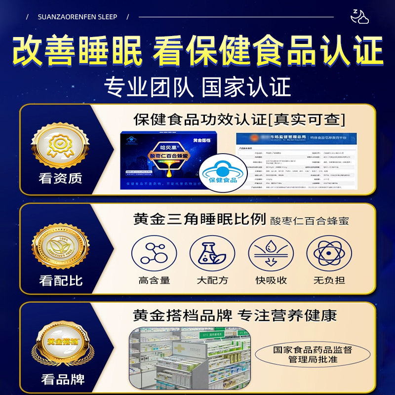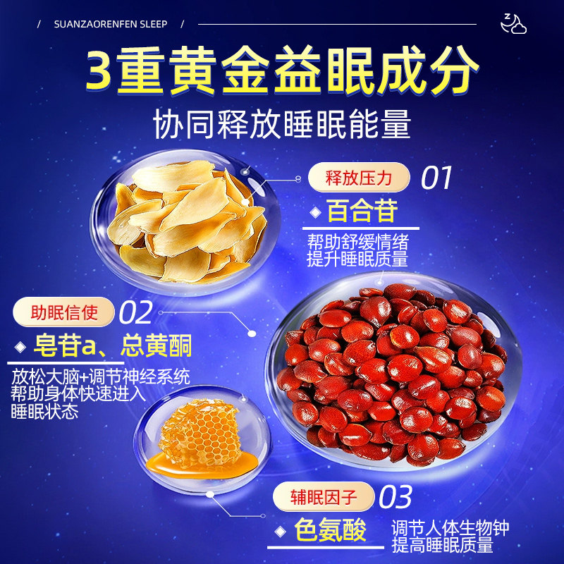 黄金搭档酸枣仁百合蜂蜜安神口服液助眠酸枣仁粉茶正品官方旗舰店