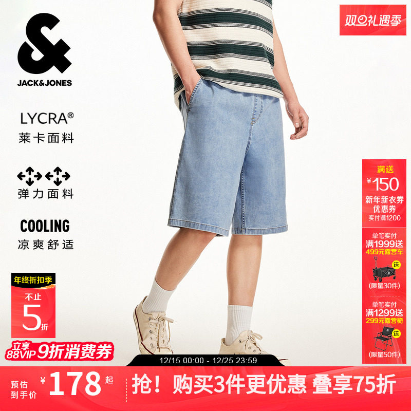 【凉感】杰克琼斯牛仔短裤男2025年秋薄浅蓝宽松弹力五分裤子男装
