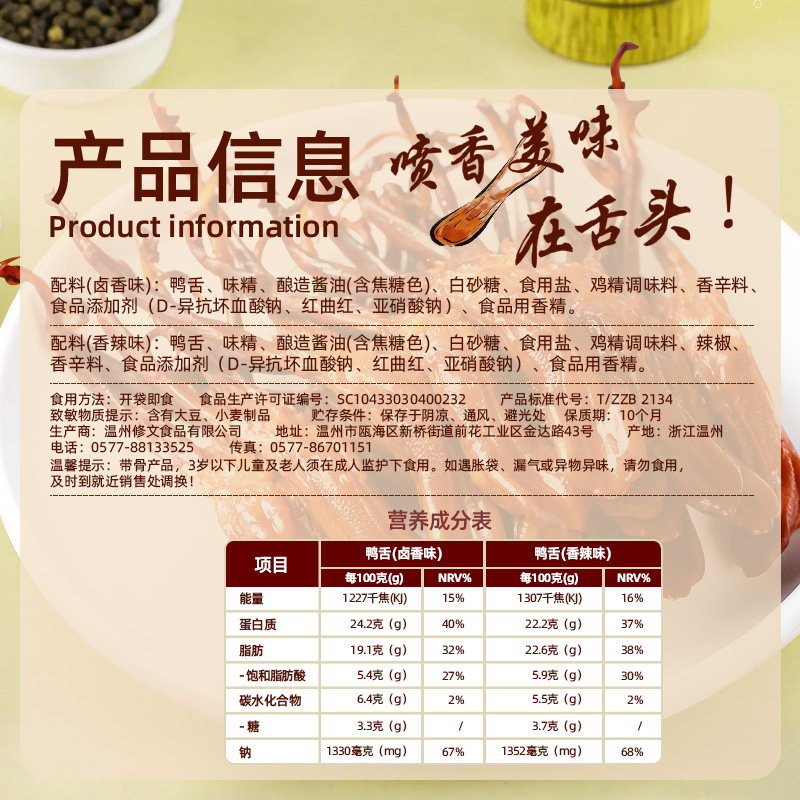 修文鸭舌零食温州特产酱鸭舌大鸭舌开袋即食熟食408g鸭肉优选送礼
