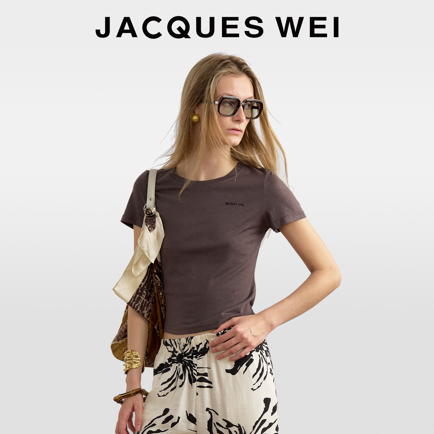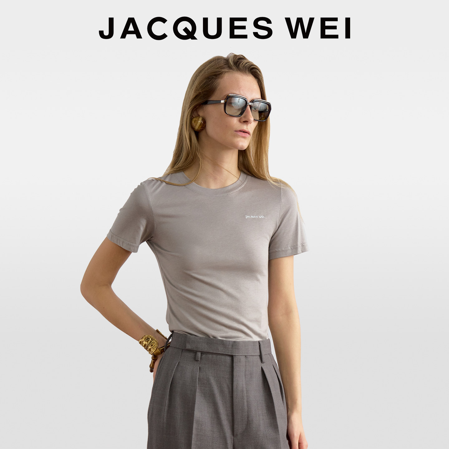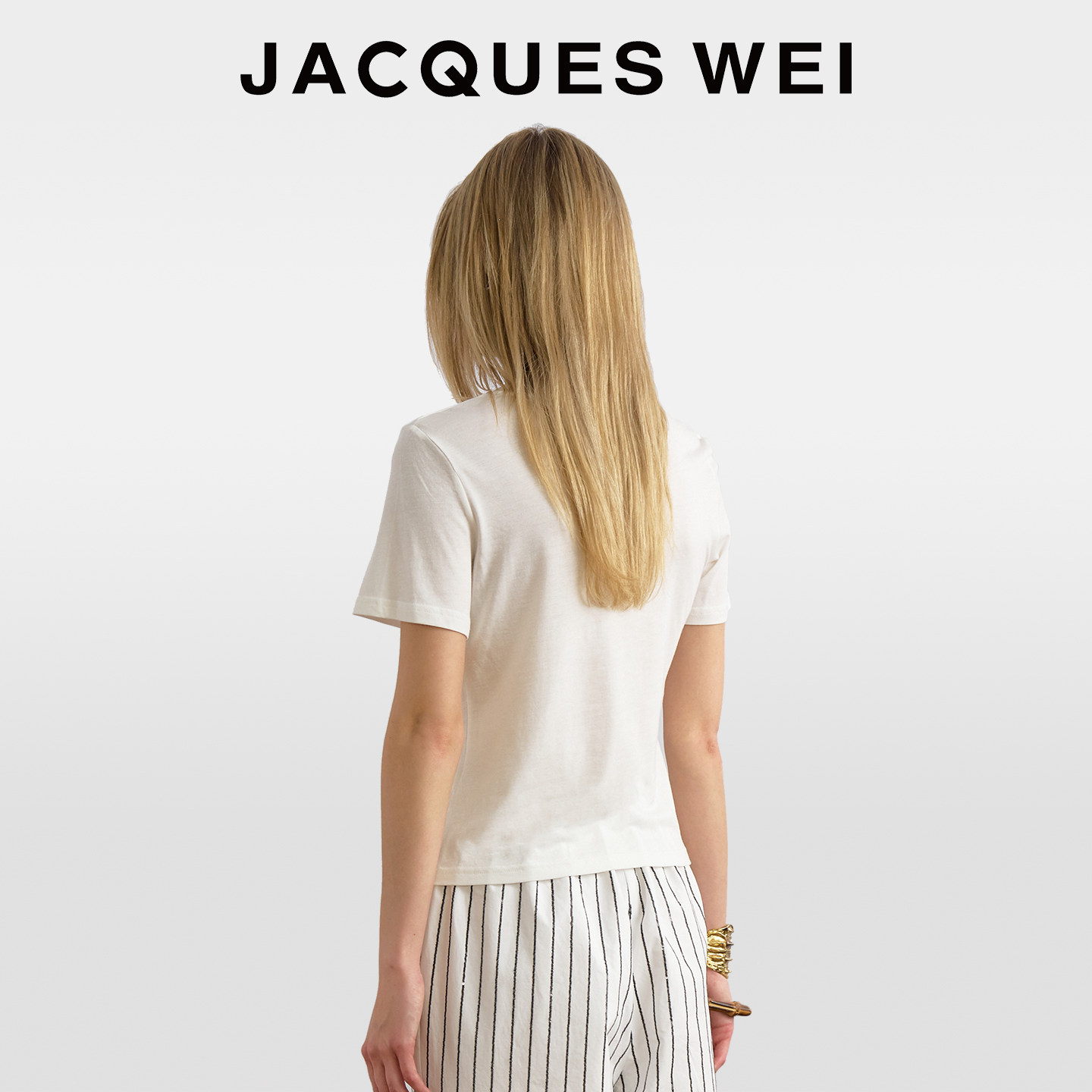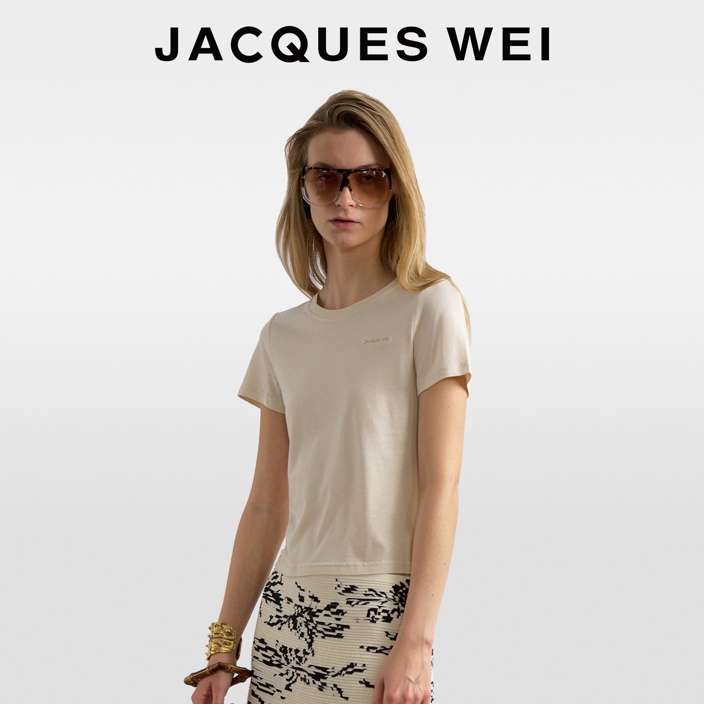 JACQUES WEI设计师款简约风时尚百搭刺绣莫代尔短袖女t恤2025新款