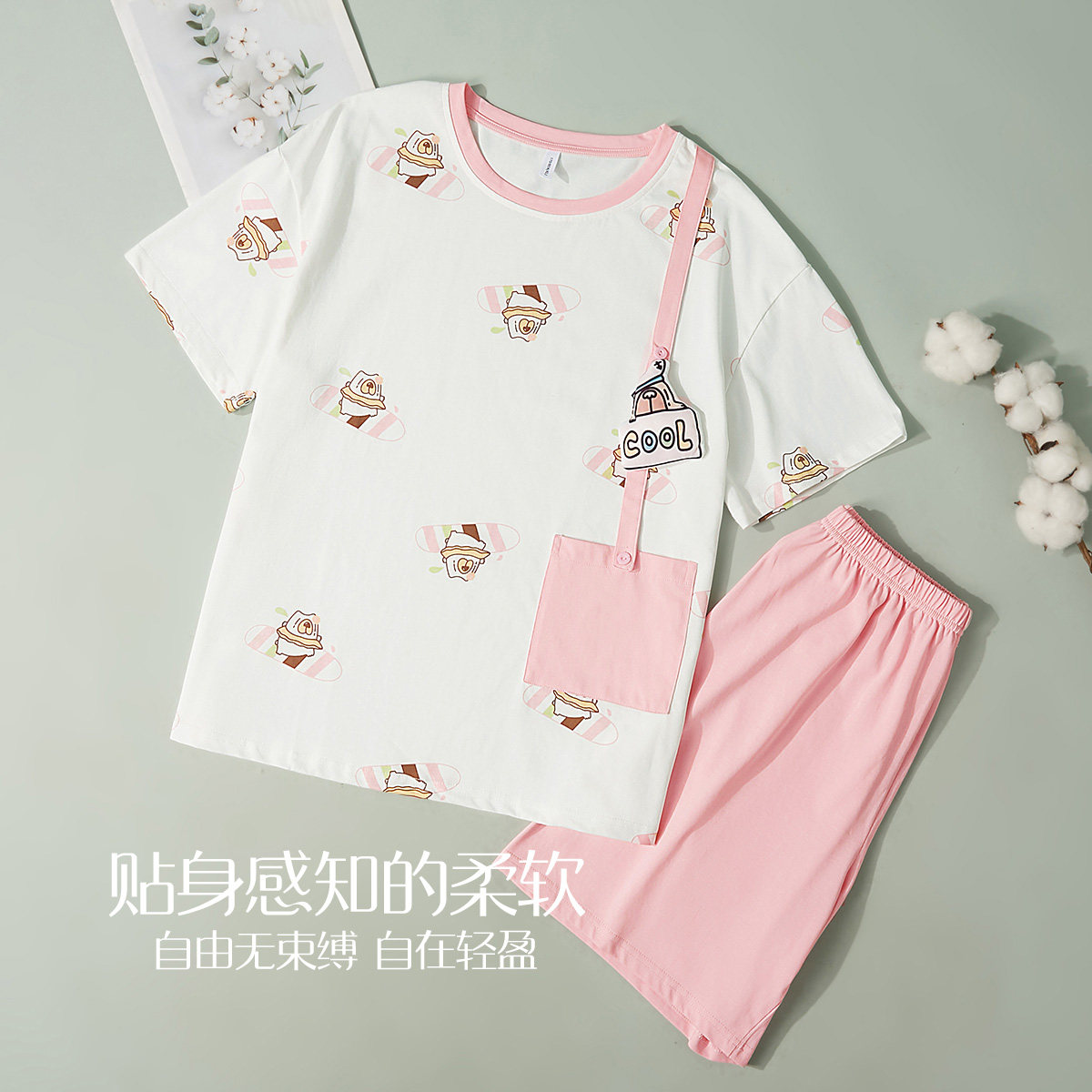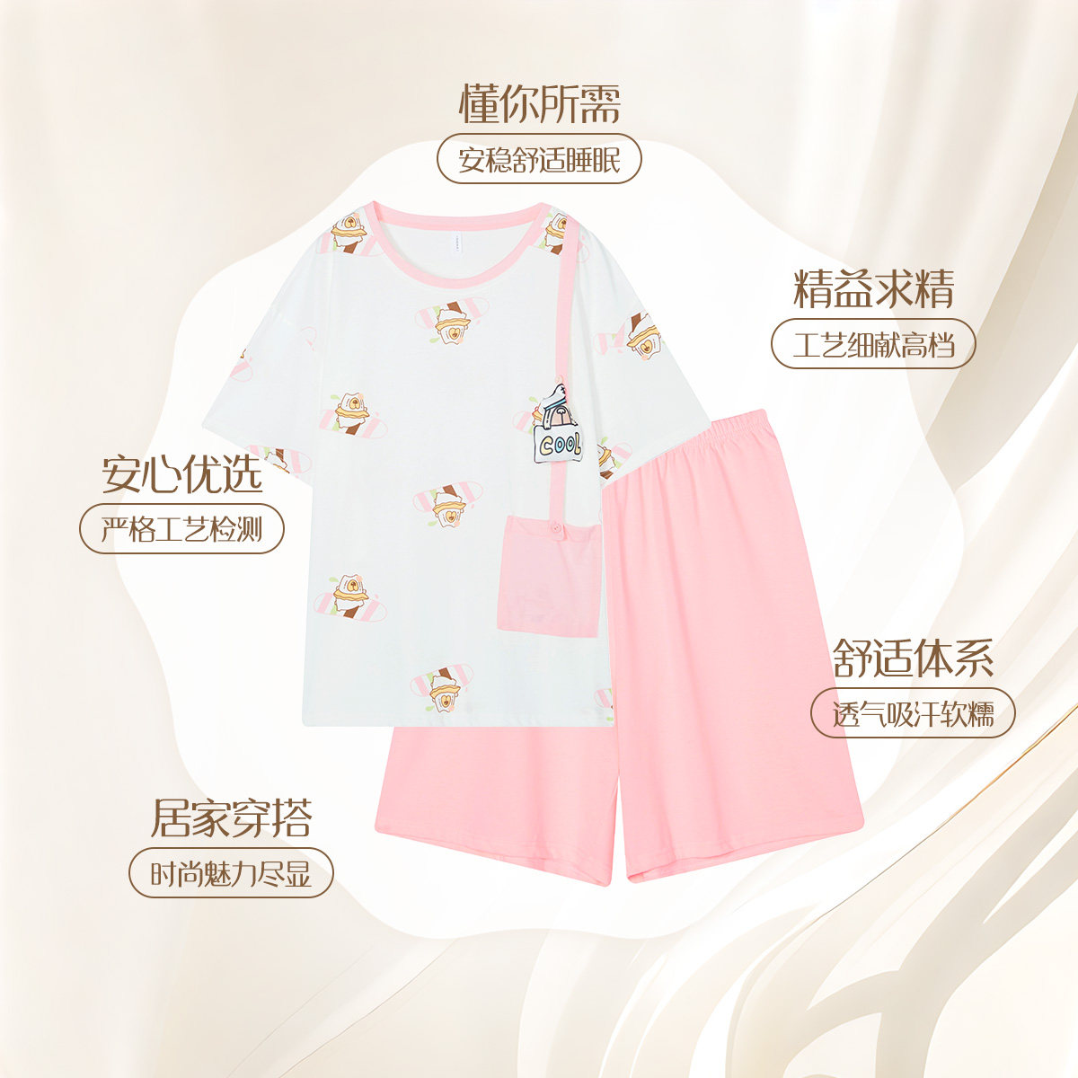 GOSO香蜜闺秀睡衣女夏季短袖长裤薄款卡通家居服