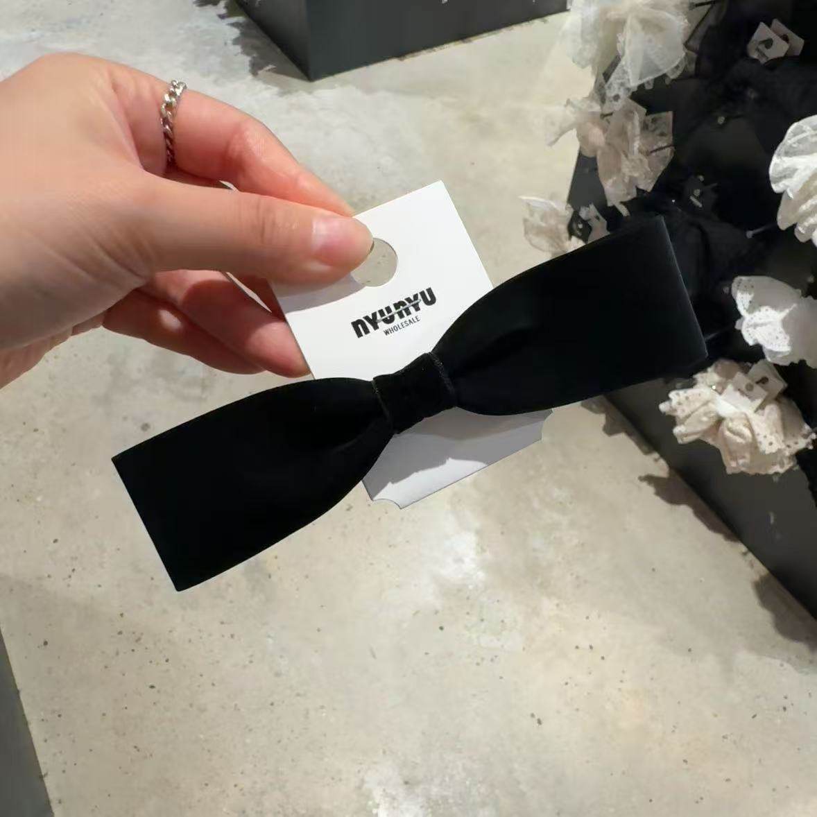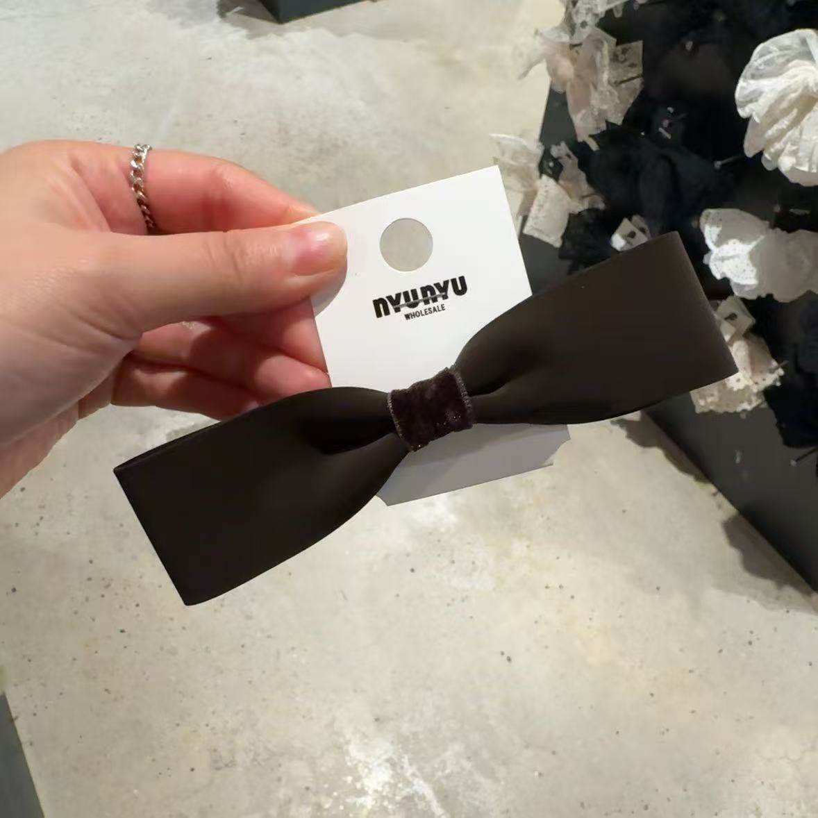 10.17韩国nyunyu发饰优雅简约丝绒蝴蝶结弹簧夹