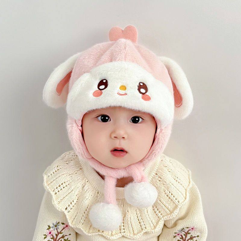 婴儿帽子秋冬季宝宝男女毛绒帽婴幼儿可爱毛线帽冬款加厚保暖男宝