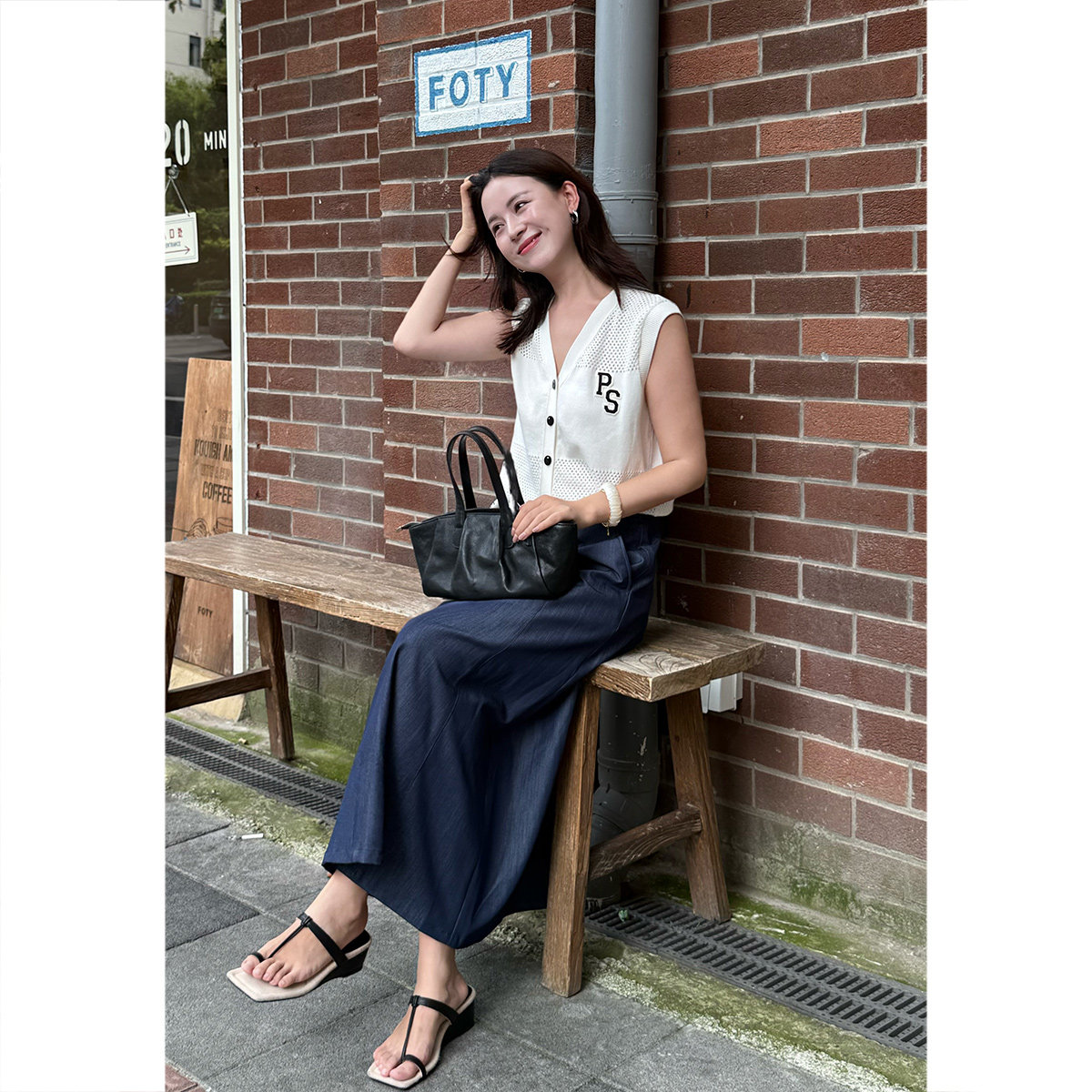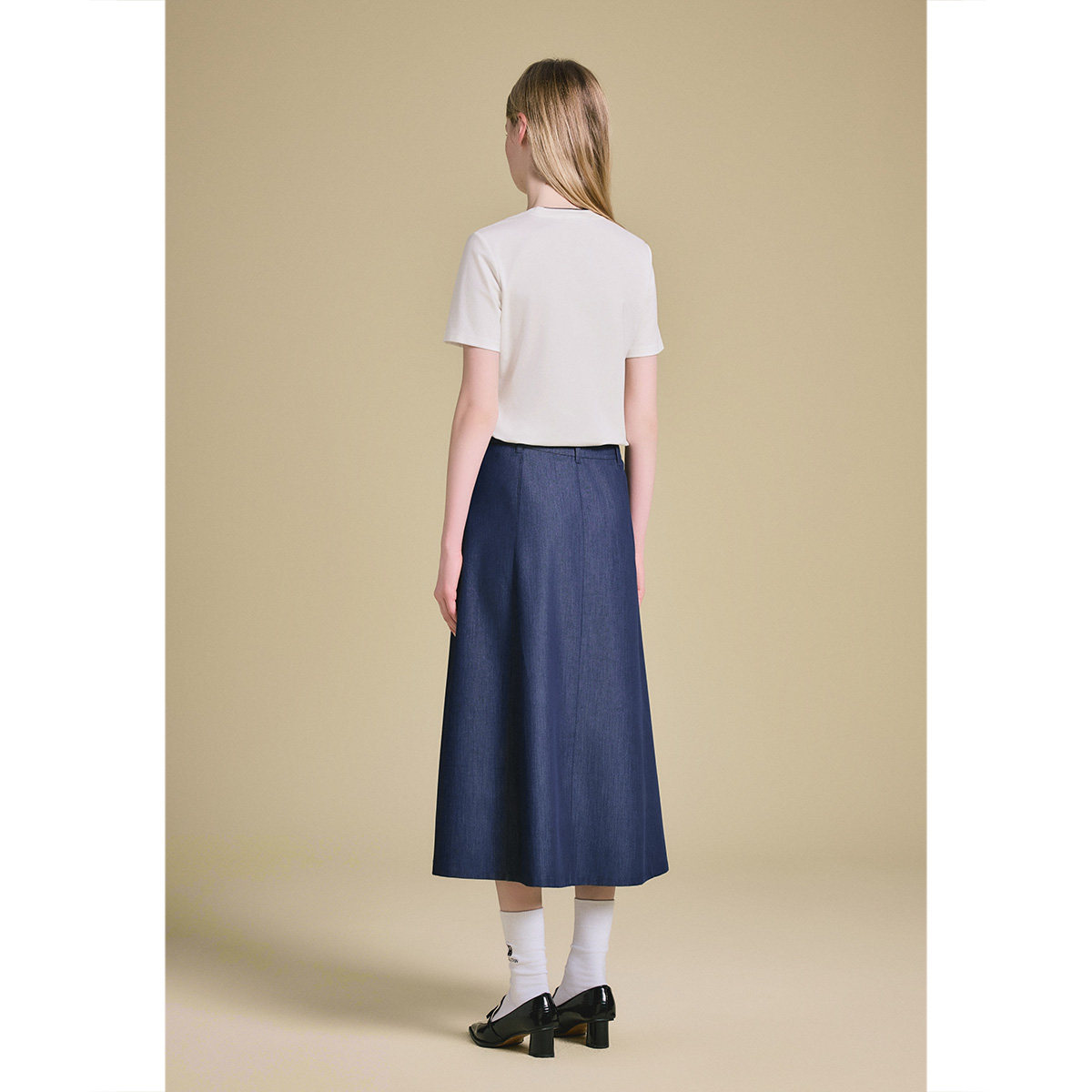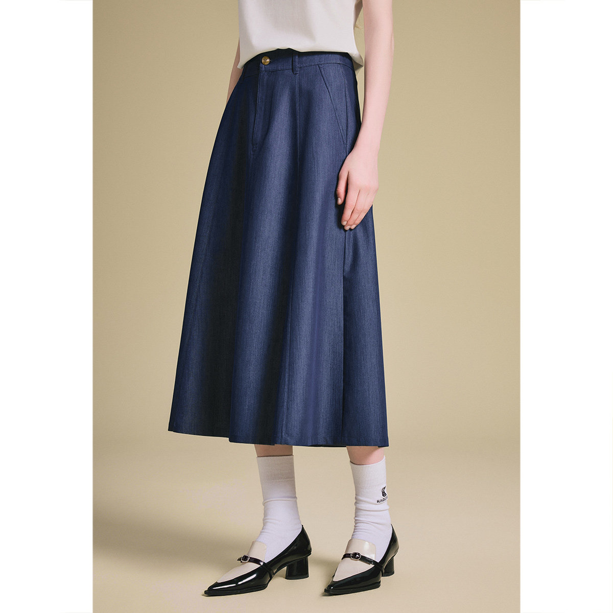PSALTER诗篇复古海军蓝休闲减龄收腰A字裙牛仔半裙2025夏款