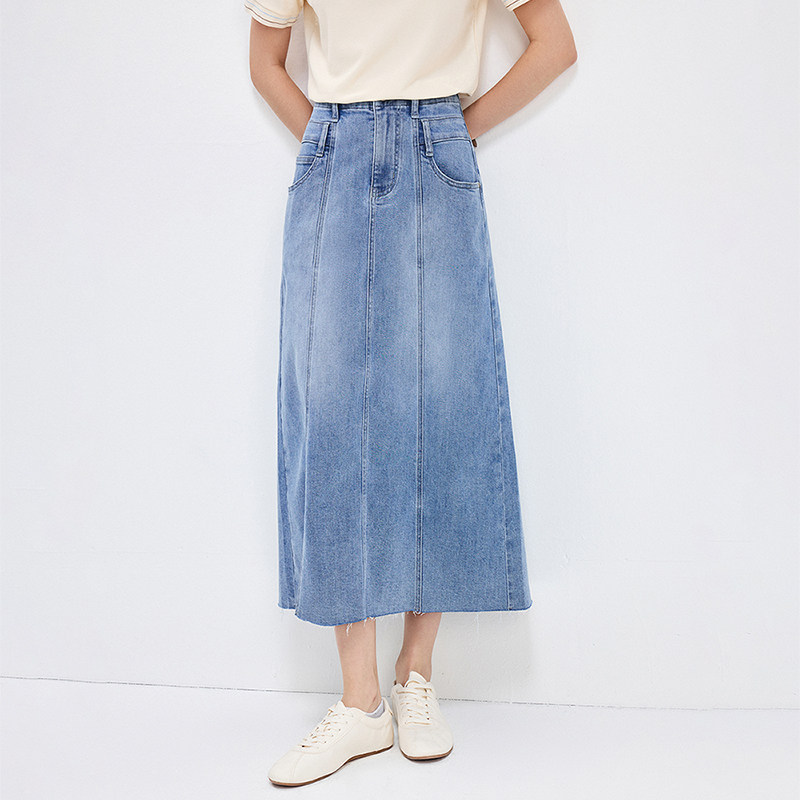 商场同款森马半身裙女磨毛纯棉长裙2025秋新款纯色伞裙百搭20002
