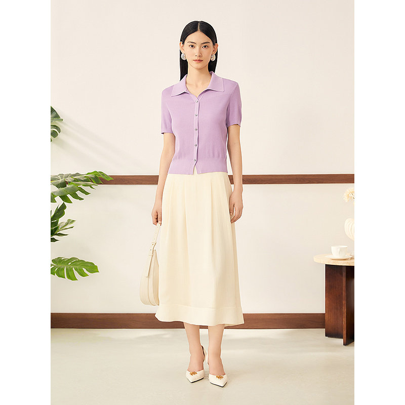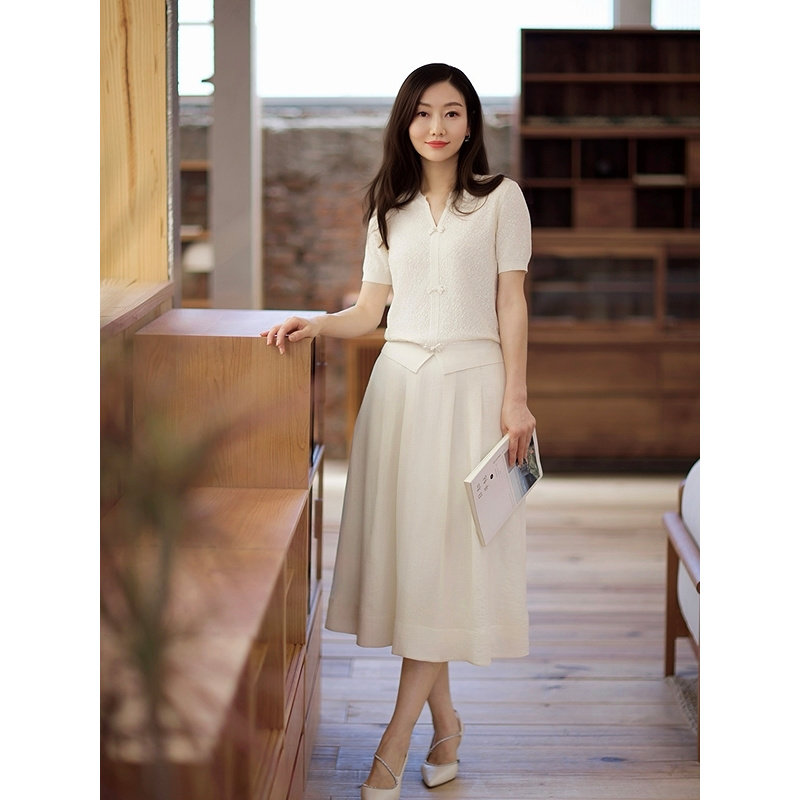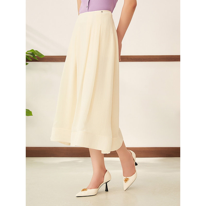 YINER音儿2025秋季新款法式提花双层纱奶油白简约高腰A字半身裙