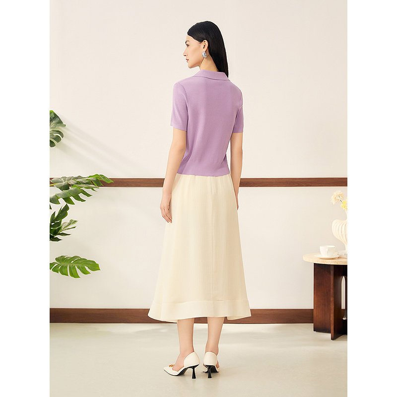 她池松紧腰百褶裙2025秋装新款女装时尚简约中长款A字高腰半身裙