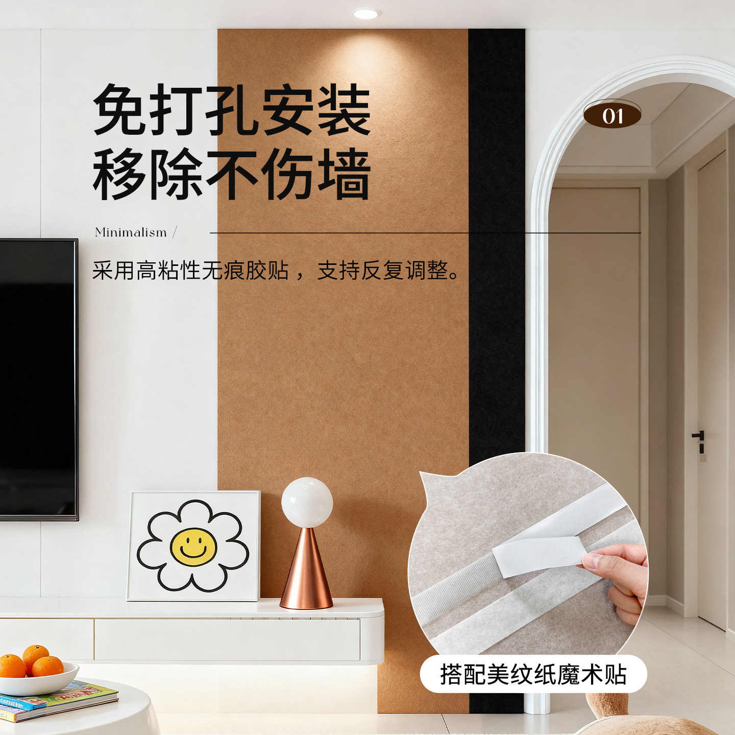 毛毡板软木板照片墙客厅玄关墙面装饰背景墙留言板大尺寸相册墙自粘免打孔创意拼色展示板出租房墙面遮丑翻新