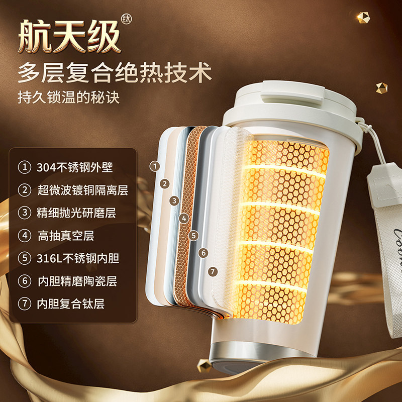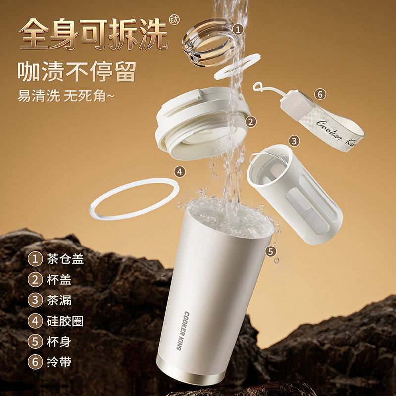保温咖啡杯钛陶瓷内胆茶水分离女士抗菌易清洗2026新款轻奢水杯子