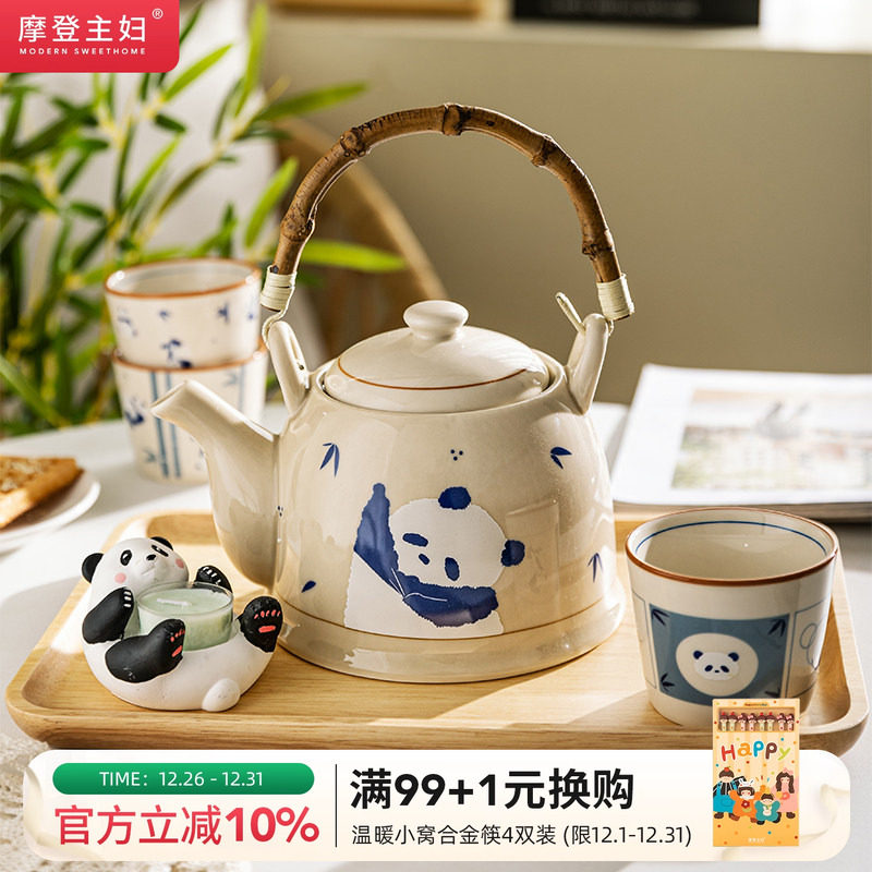 摩登主妇熊猫茶具泡茶壶家用套装陶瓷杯具乔迁新婚礼物水壶茶杯子