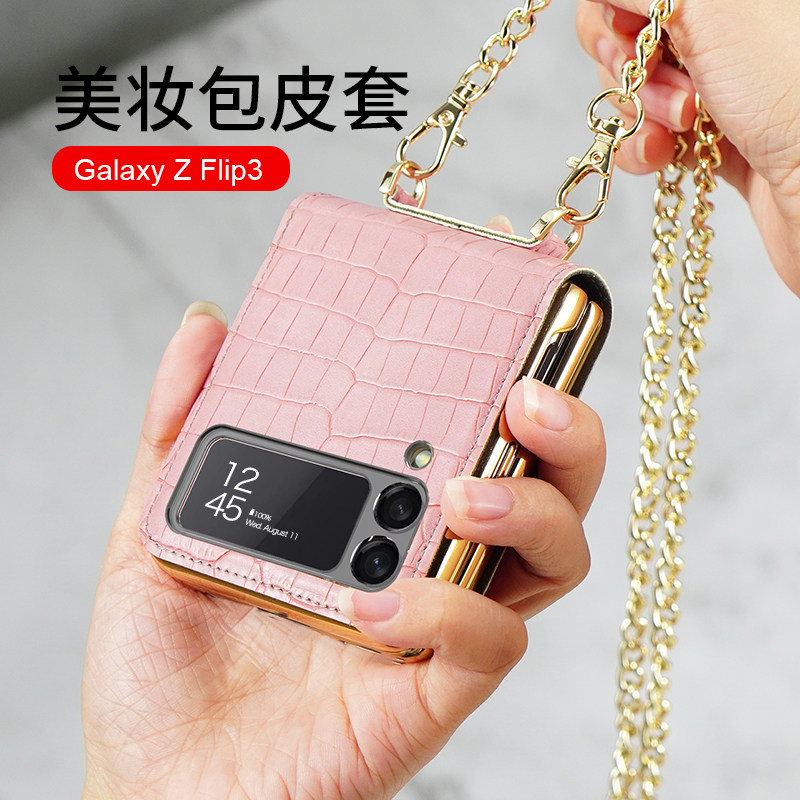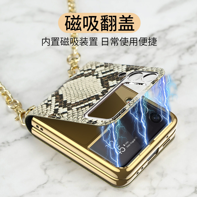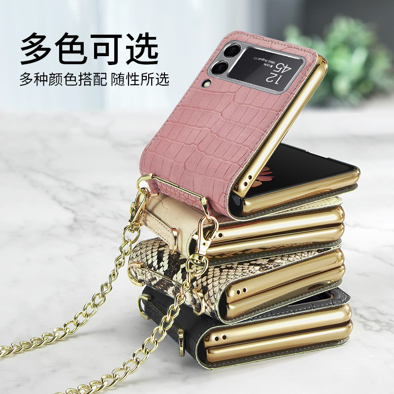 适用于三星SM-Flip3手机壳美妆包皮套超薄鱼纹f7110全包挂绳时尚