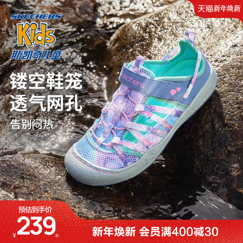 Skechers儿童夏季户外运动包头凉鞋女童涉水防滑溯溪鞋休闲凉鞋