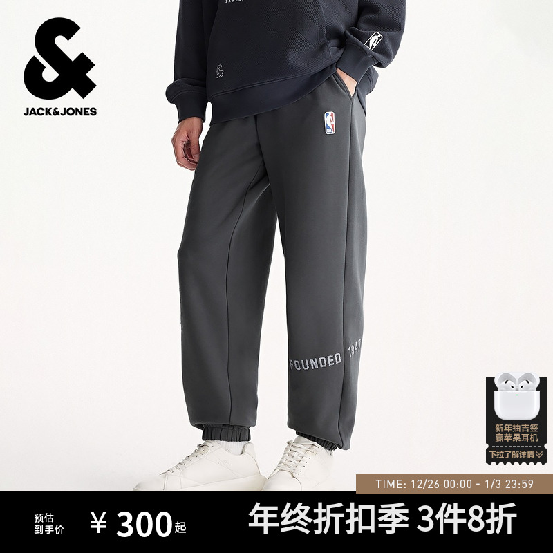 杰克琼斯男装秋季略宽松束脚裤长裤卫裤NBA联名刺绣图案潮流酷