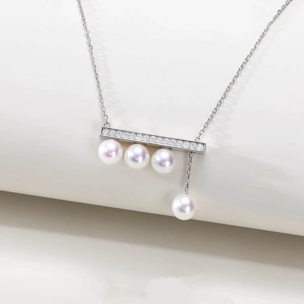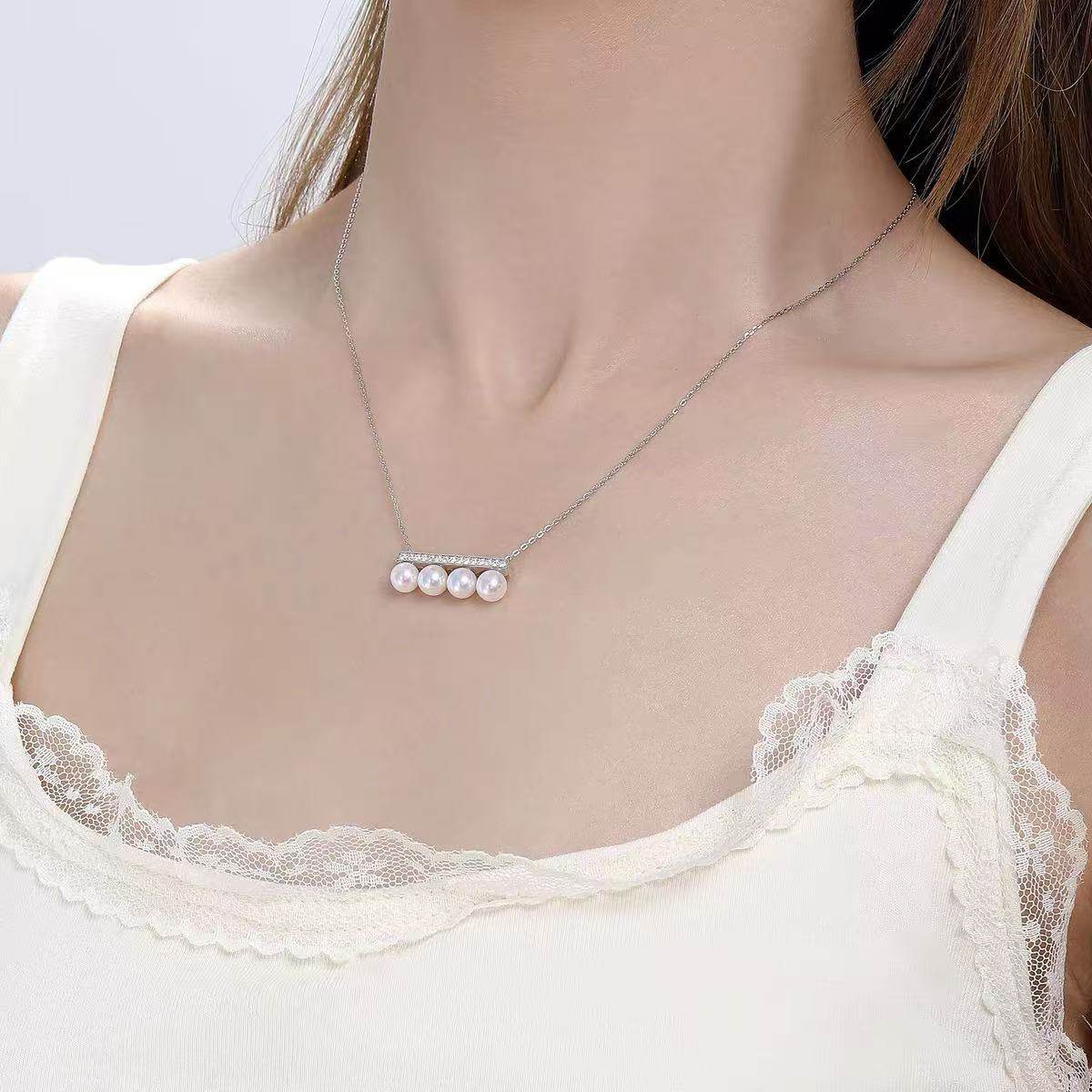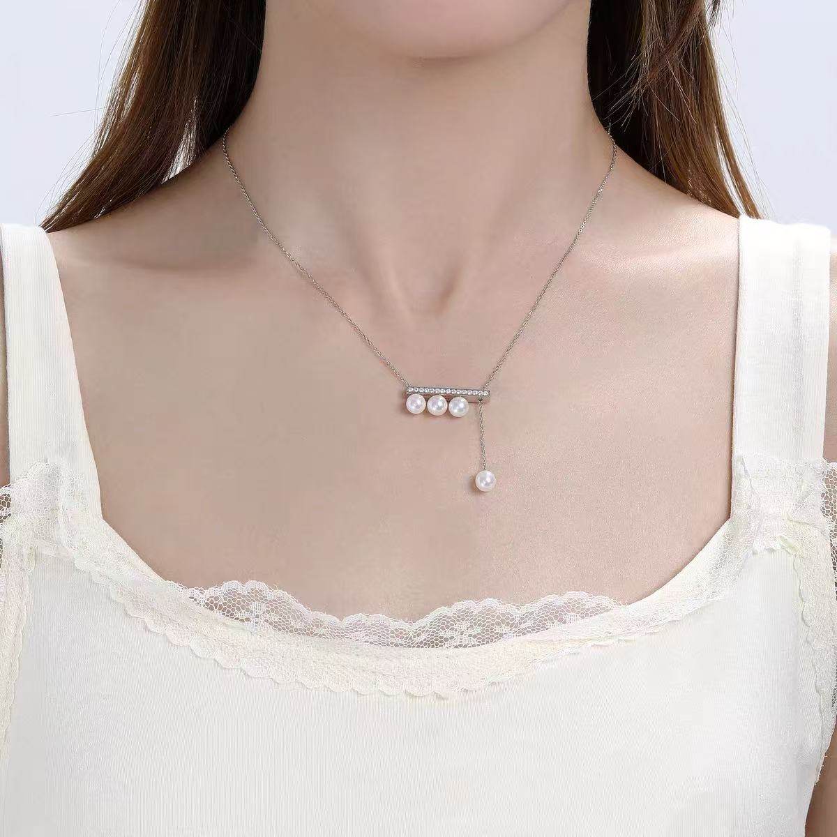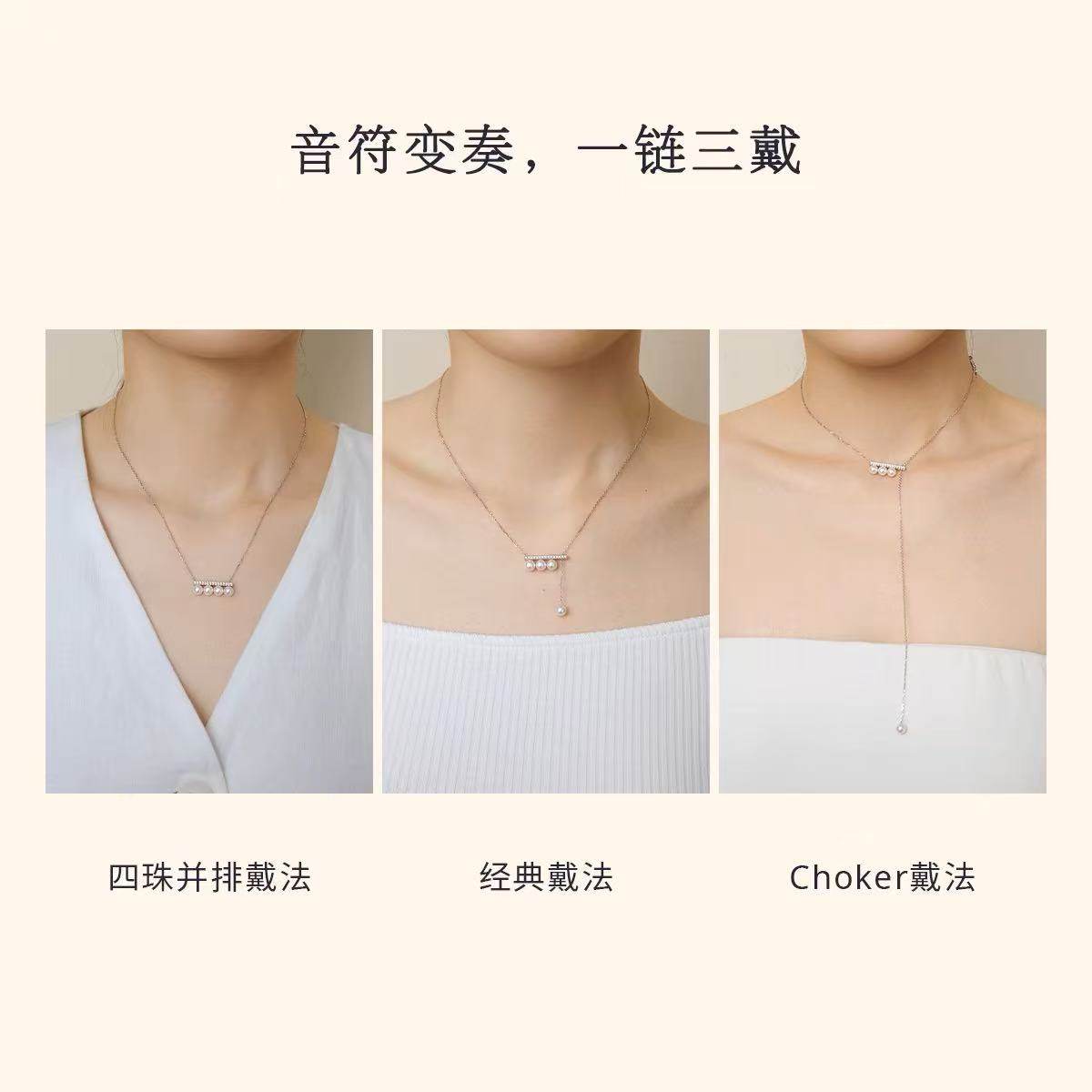 诸暨淡水珍珠项链女S925银抽拉可调节平衡木气质锁骨链教师节礼物