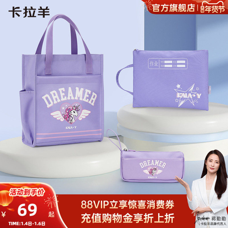 卡拉羊学生学习用品三件套大容量多功能科学分区防泼水补习袋笔袋文件袋三件套分科袋文具盒轻便