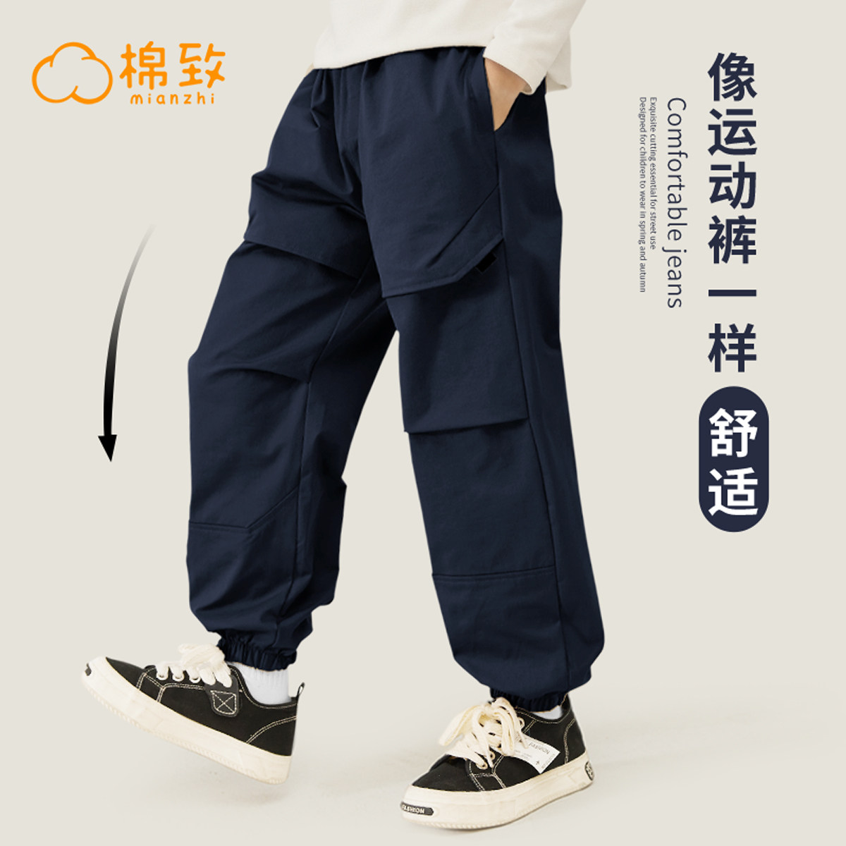 棉致男童裤子春秋2025新款潮酷男大童工装裤春季薄款儿童休闲裤男