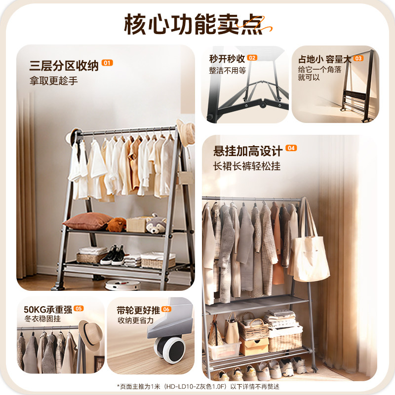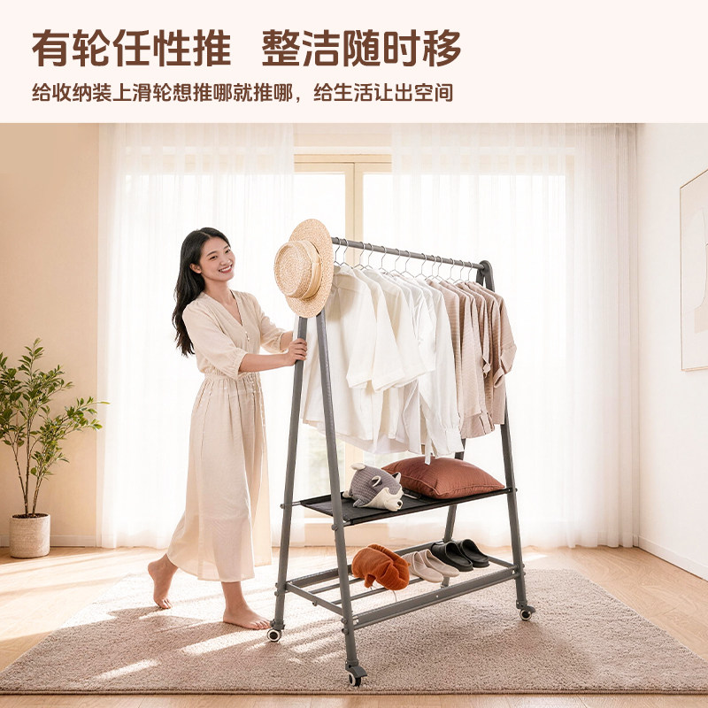 晾衣架落地家用可移动卧室凉衣架阳台挂衣服架子室内简易杆衣帽架