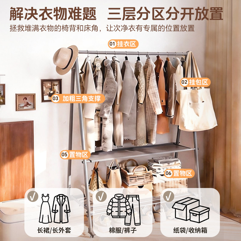 简易衣帽架落地室内房间挂衣架子可移动晾衣架家用卧室衣服收纳架