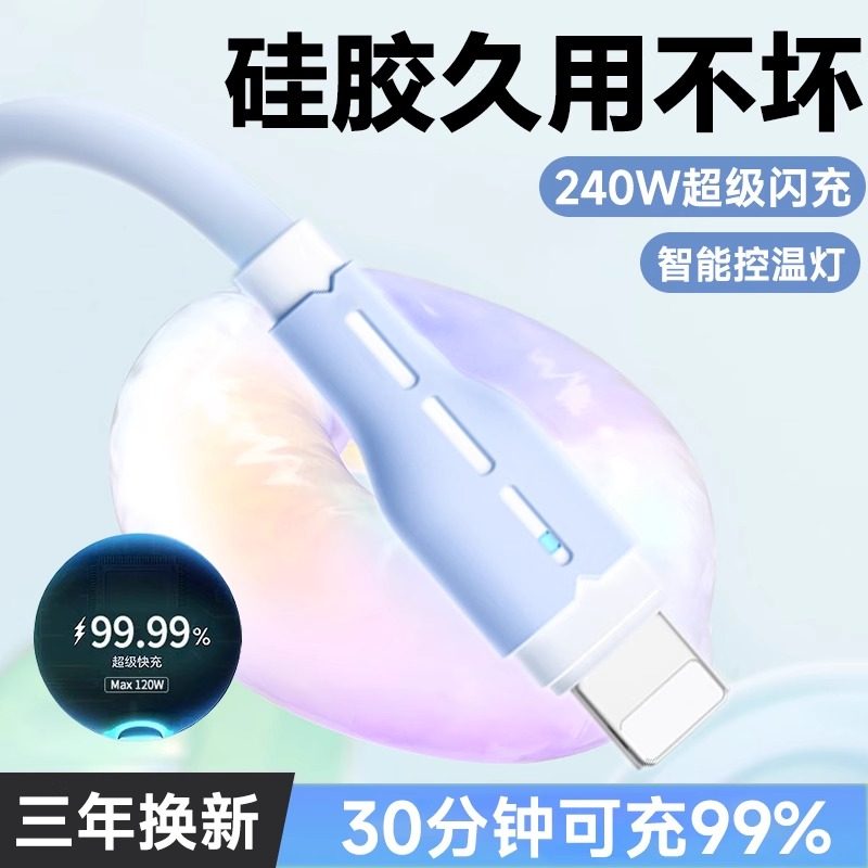 睿洛超级闪充适用苹果iPhone14promax充电线8X/11/12/13plus7硅胶数据线6A闪充Pad平板车载通用加长2米带灯光