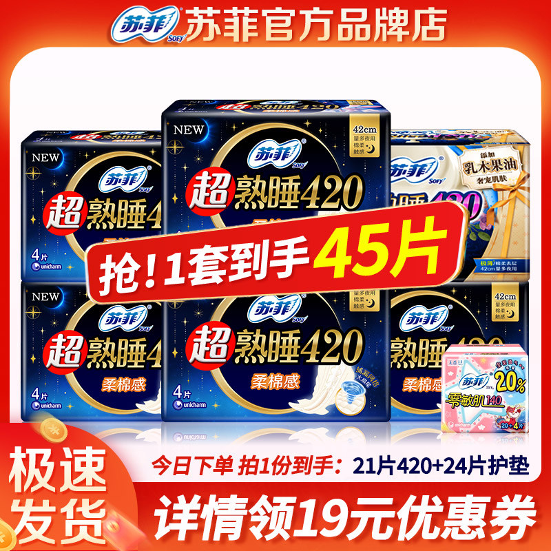 苏菲卫生巾超长夜用熟睡420棉柔整箱组合产妇 姨妈巾官方品牌正品