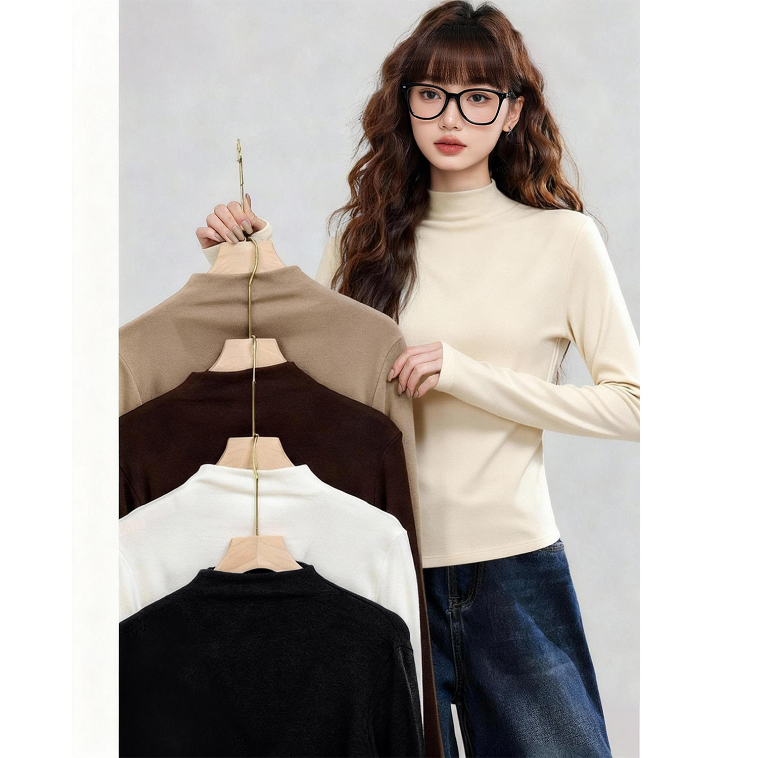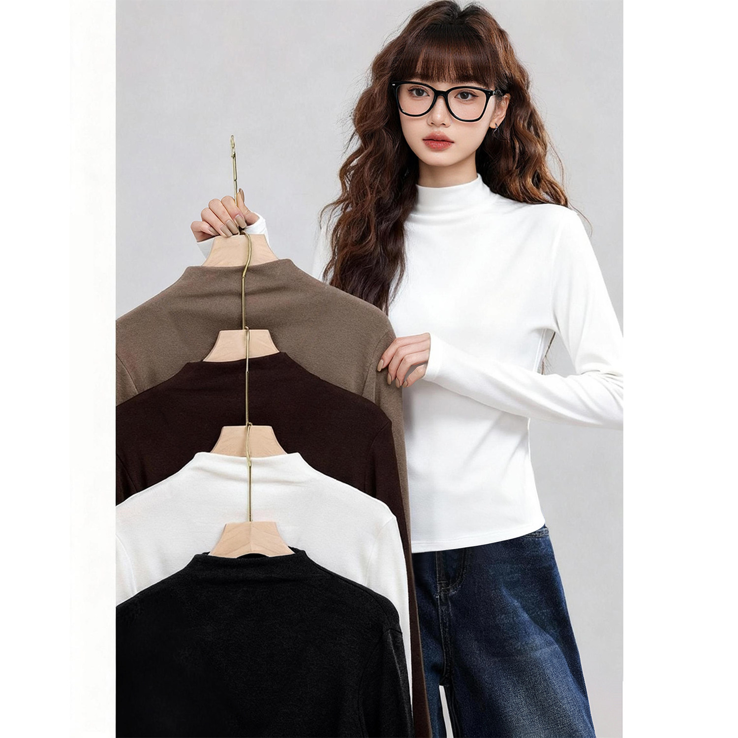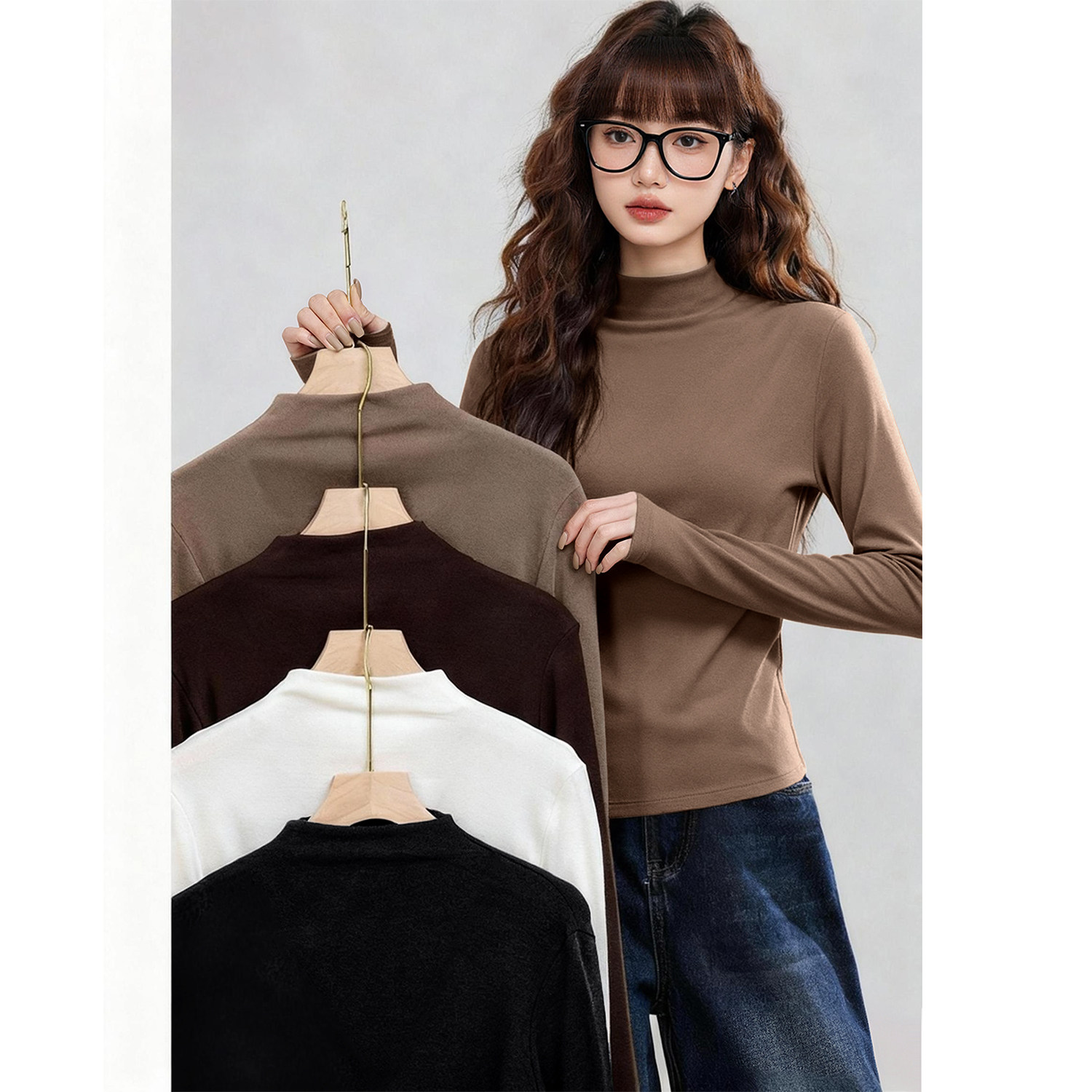 NOW真维斯半高领打底衫女2025新款秋冬季修身磨毛内搭长袖上衣女