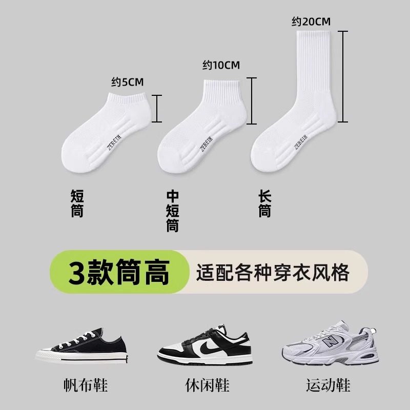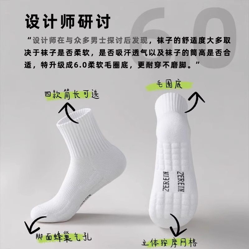 透气男士袜子秋冬季毛巾底运动袜中筒袜长袜防臭长筒毛圈白色吸汗