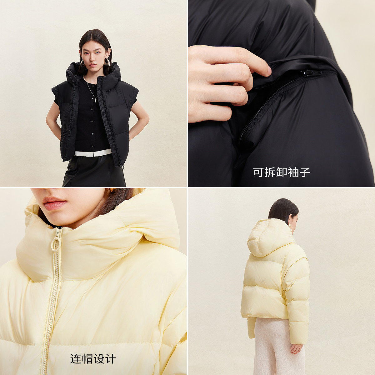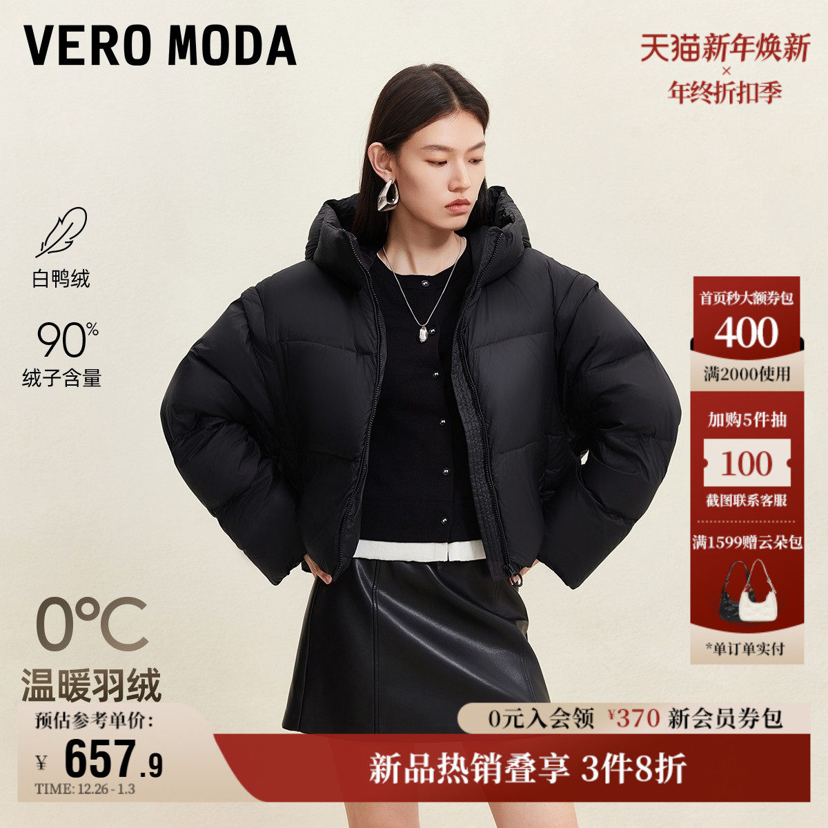 Vero Moda奥莱羽绒服女2025冬季新款90白鸭绒可拆袖短款连帽优雅