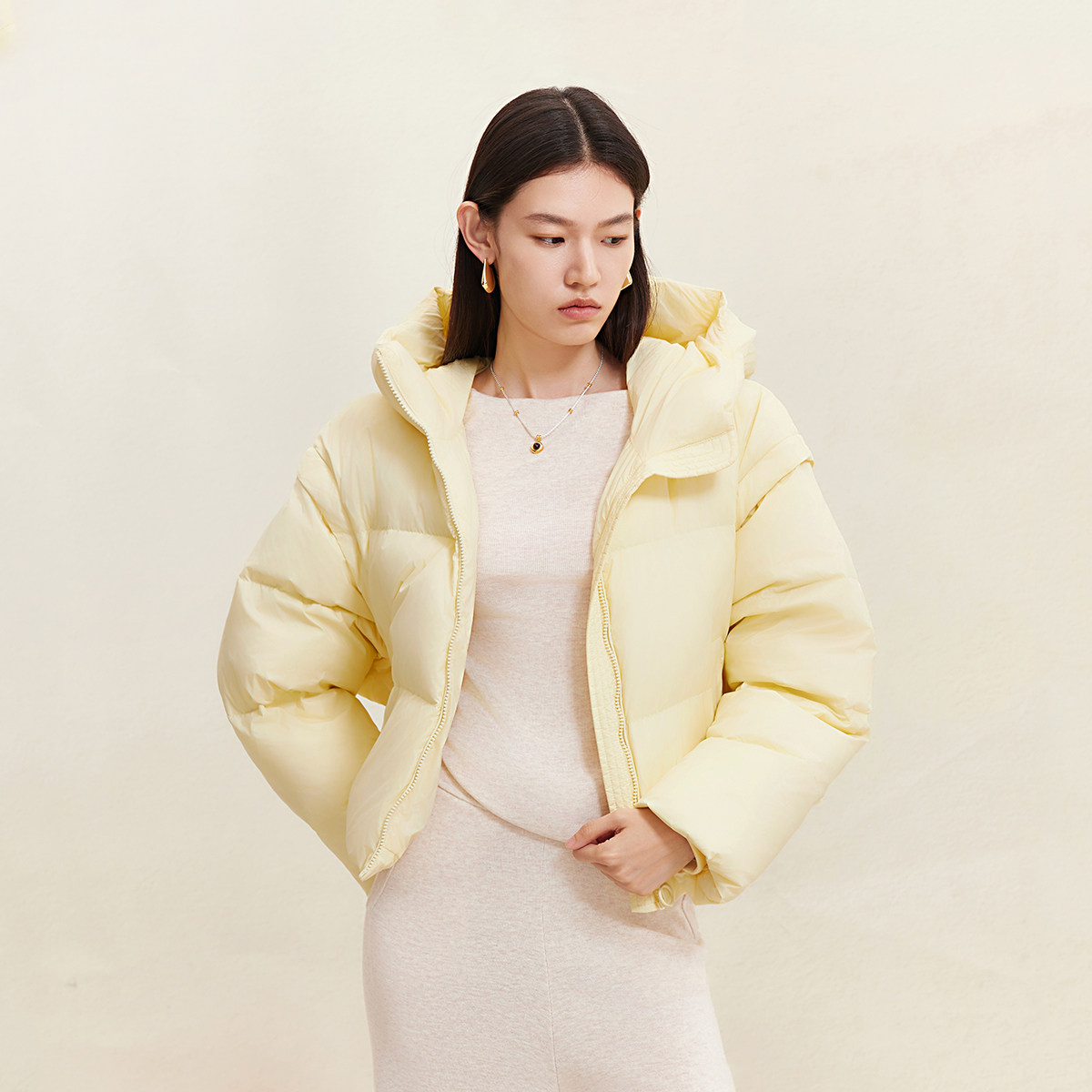 鸭鸭2025秋冬新款立领短款羽绒服小个子女冬多巴胺连帽可拆帽外套
