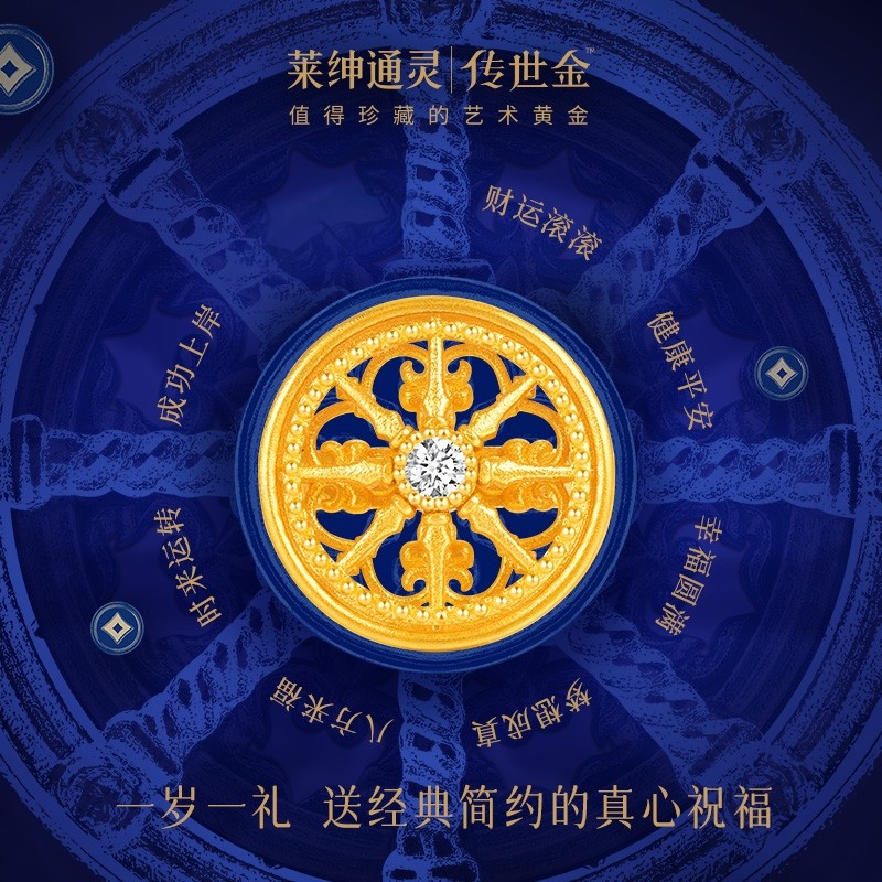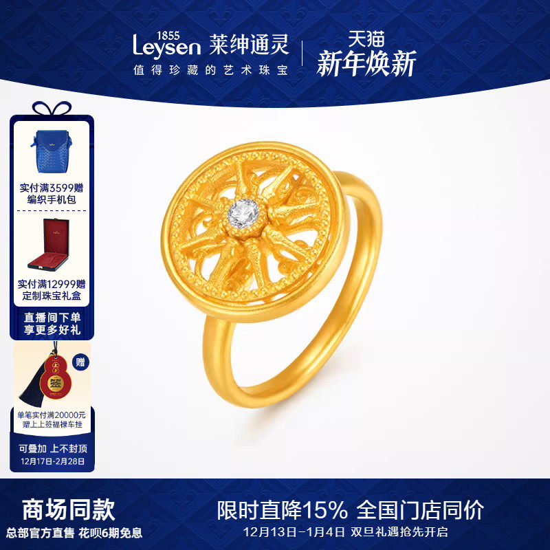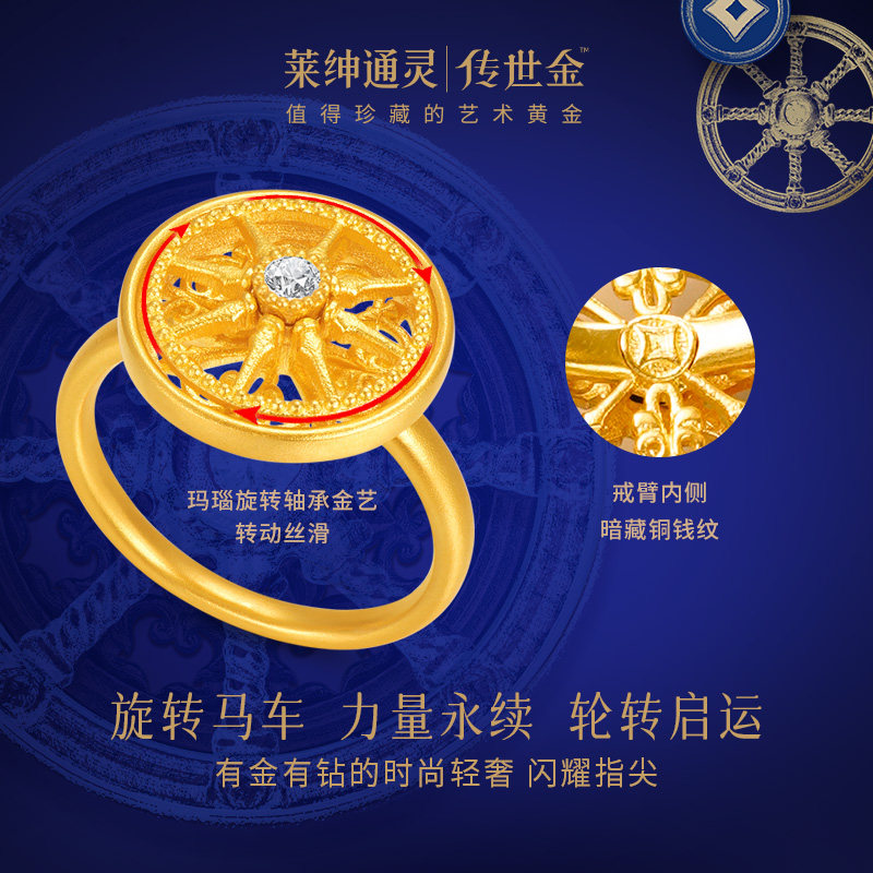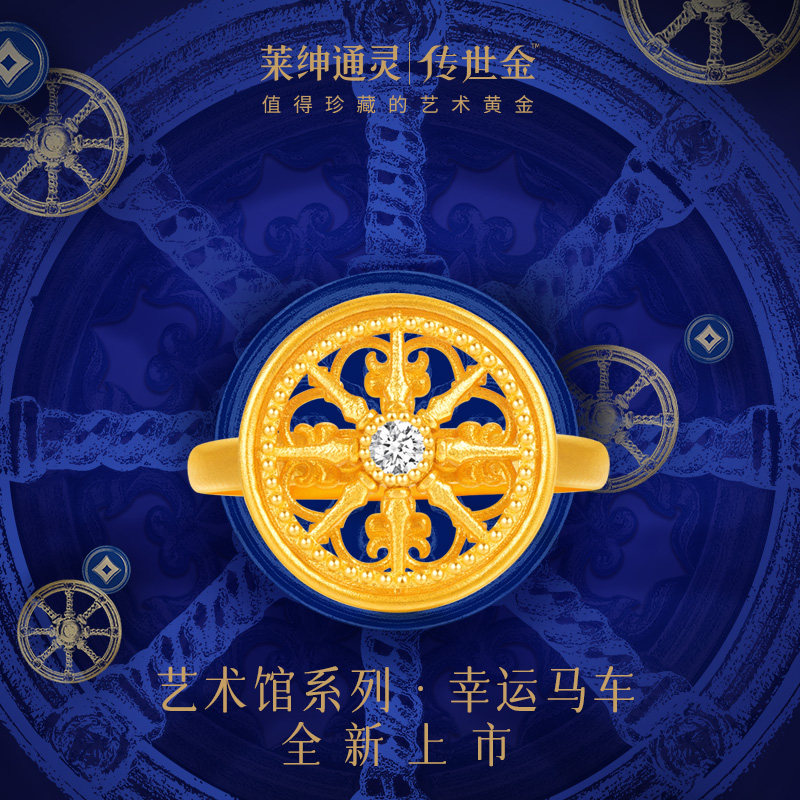 莱绅通灵 艺术馆幸运黄金马车 八宝罗盘花窗足金999钻石戒指