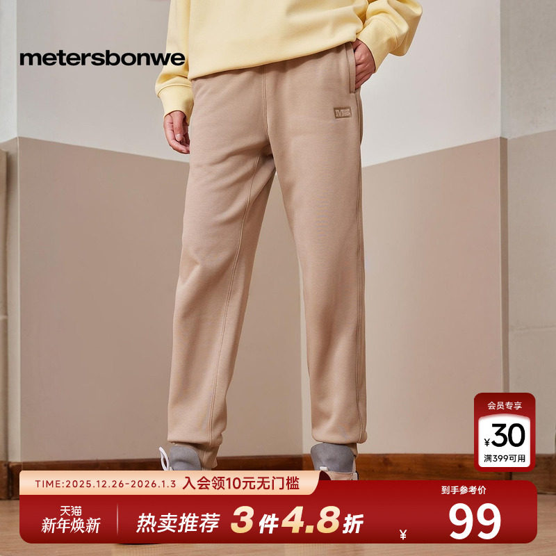 美特斯邦威男女款螺纹束脚刺绣简约休闲长裤秋冬新款加绒保暖下装