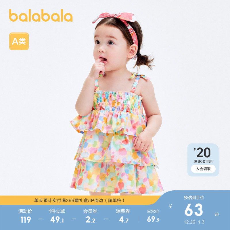 巴拉巴拉婴儿连衣裙女童裙子宝宝公主裙小童吊带裙新款夏装俏皮萌