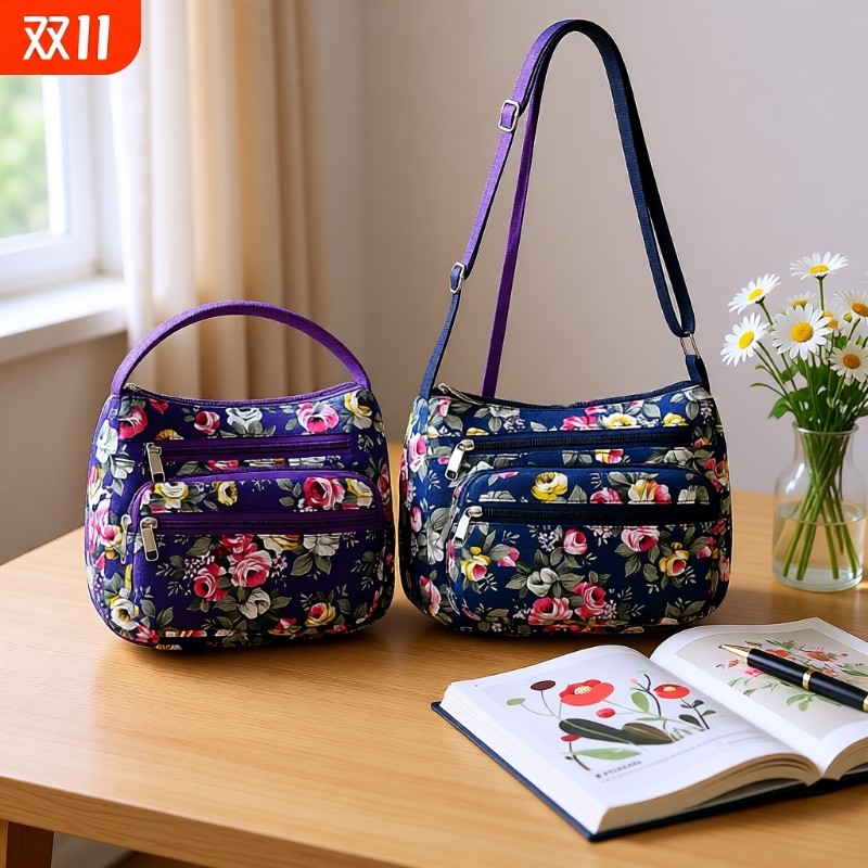 中老年单肩大容量帆布包尼龙女包印花牛津布斜背包斜挎妈妈包挎包