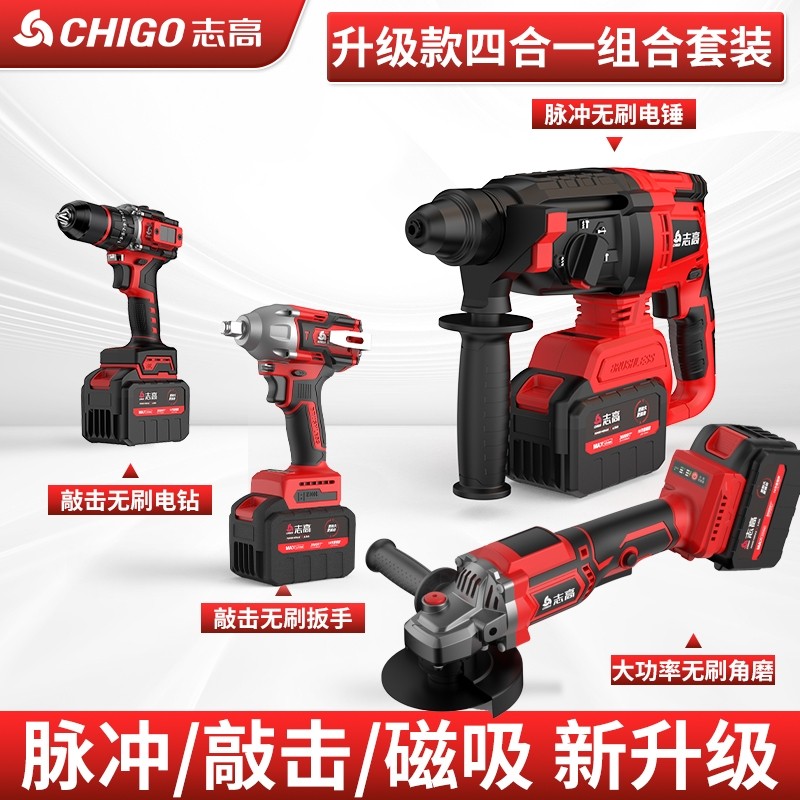 志高充电锂电工具套装四件套电锤电钻角磨机电动扳手无刷电镐瓷砖
