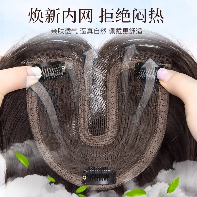 戴发网假发女全头套无痕高颅顶增发黑长直假发片发丝前额醒发蓬松