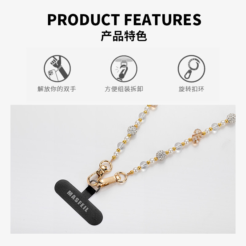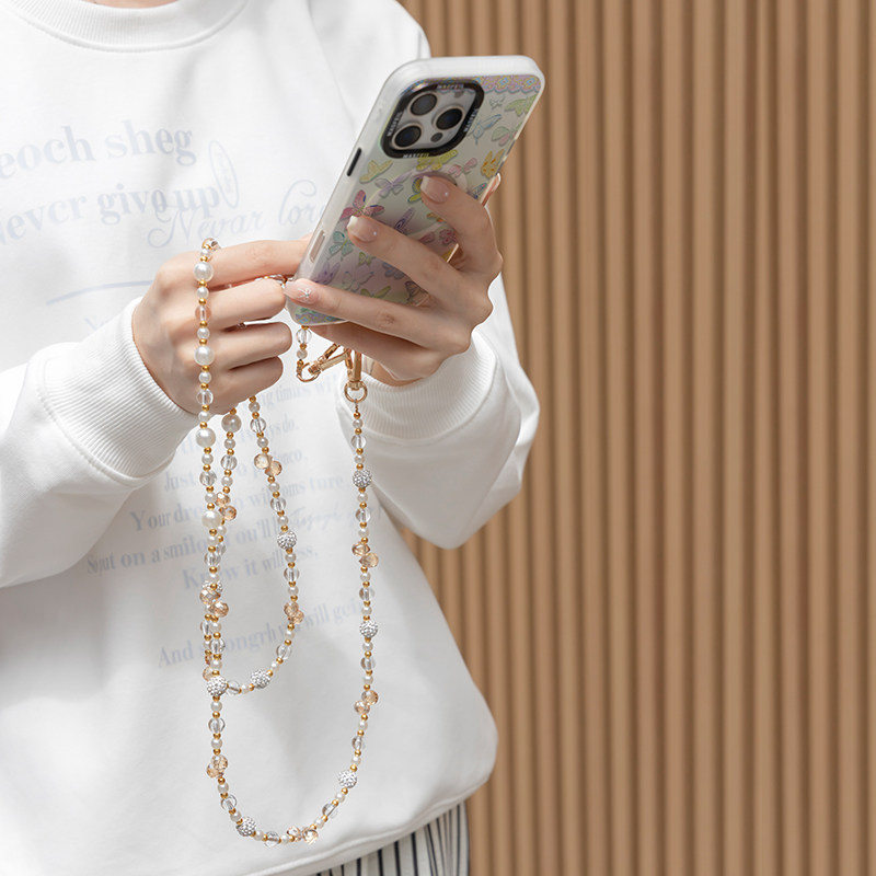 SHEHENG ×水晶珍珠手机挂链挂绳挂链绳子适用苹果手机壳可爱配件包包挂件挂饰链ins风防丢绳网红斜挎