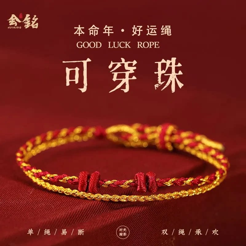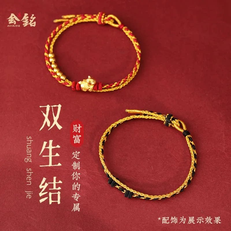 新年情侣手工编织手绳转运黄金小马财源好运可穿穿珠双绳手链刻字