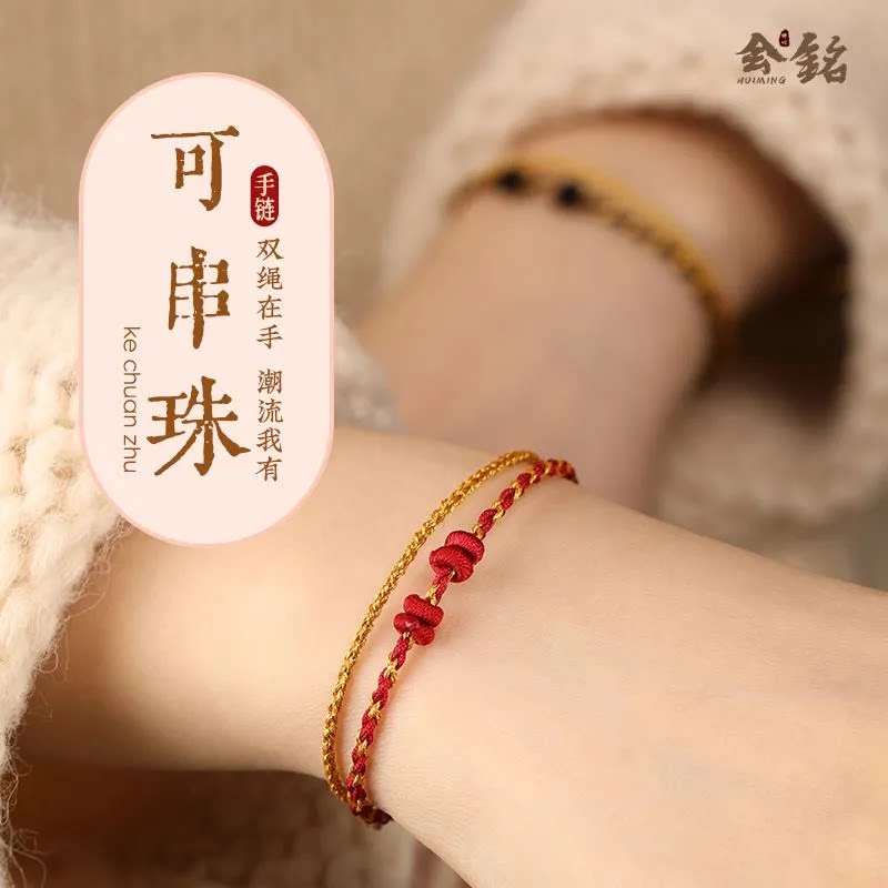 防水钢丝绳本命年手绳红绳手链转运珠小孔串穿黄金编织绳男女情侣
