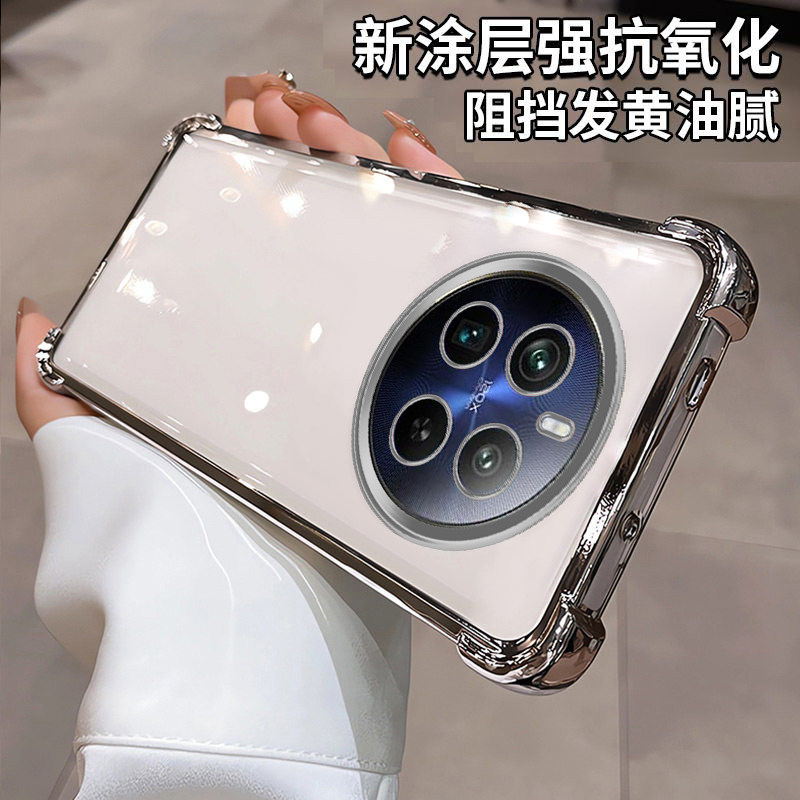 真我12pro手机壳新款四角气囊硅胶防摔时尚镜头全包软壳适用12pro+高级感强抗氧化12pro至尊版电镀透明手机壳